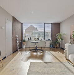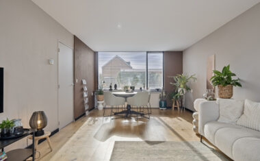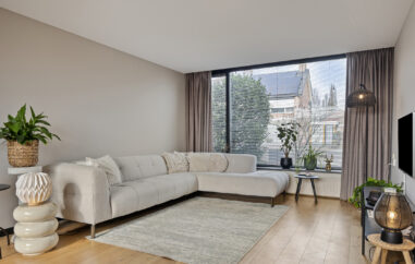 De doorzonwoonkamer is ruim opgezet en beschikt over grote raampartijen aan zowel de voor- als achterzijde, waardoor er veel daglicht naar binnen valt. Hier is voldoende ruimte voor een comfortabele zithoek én een royale eethoek.