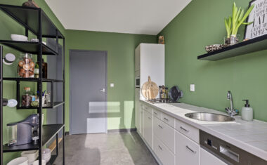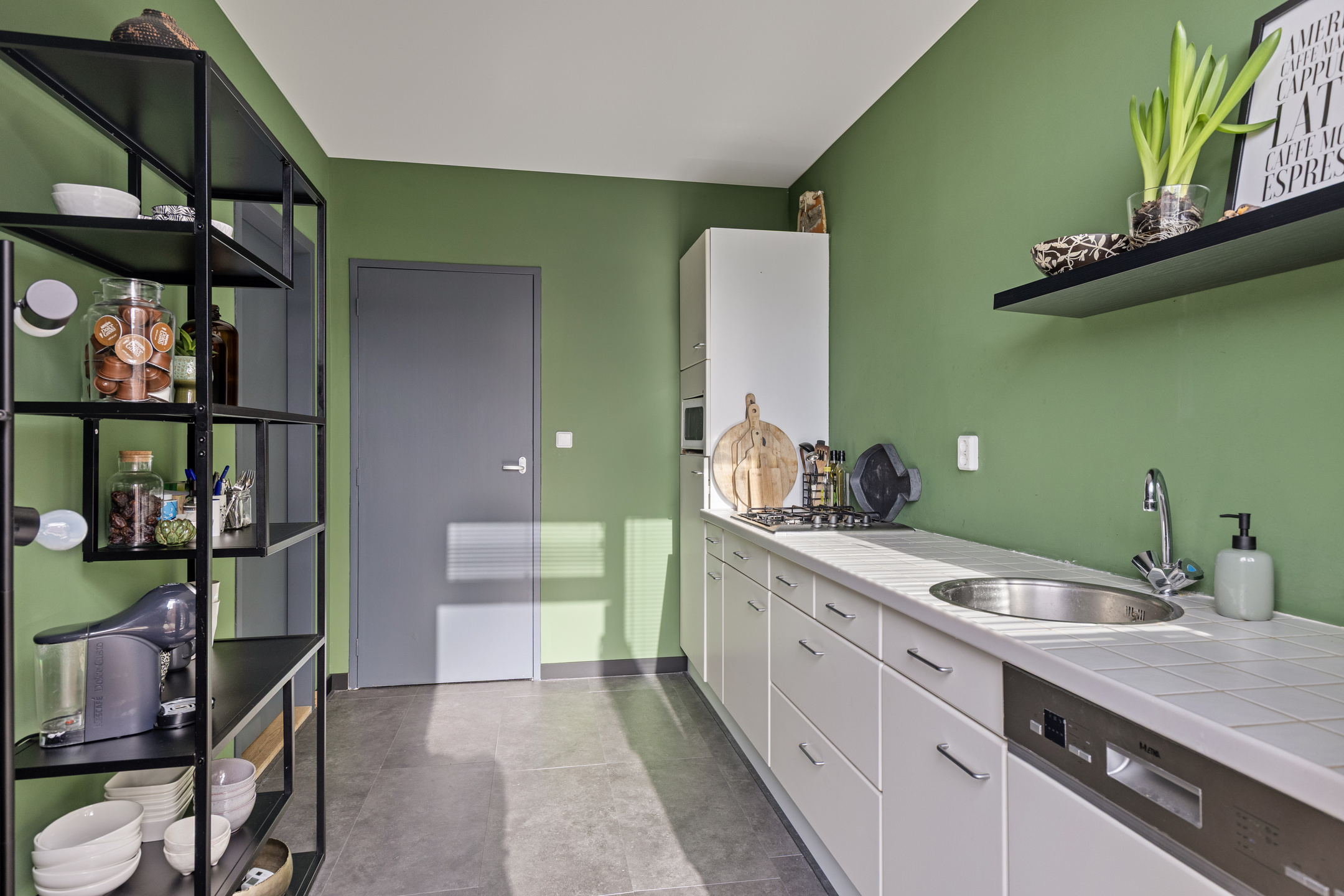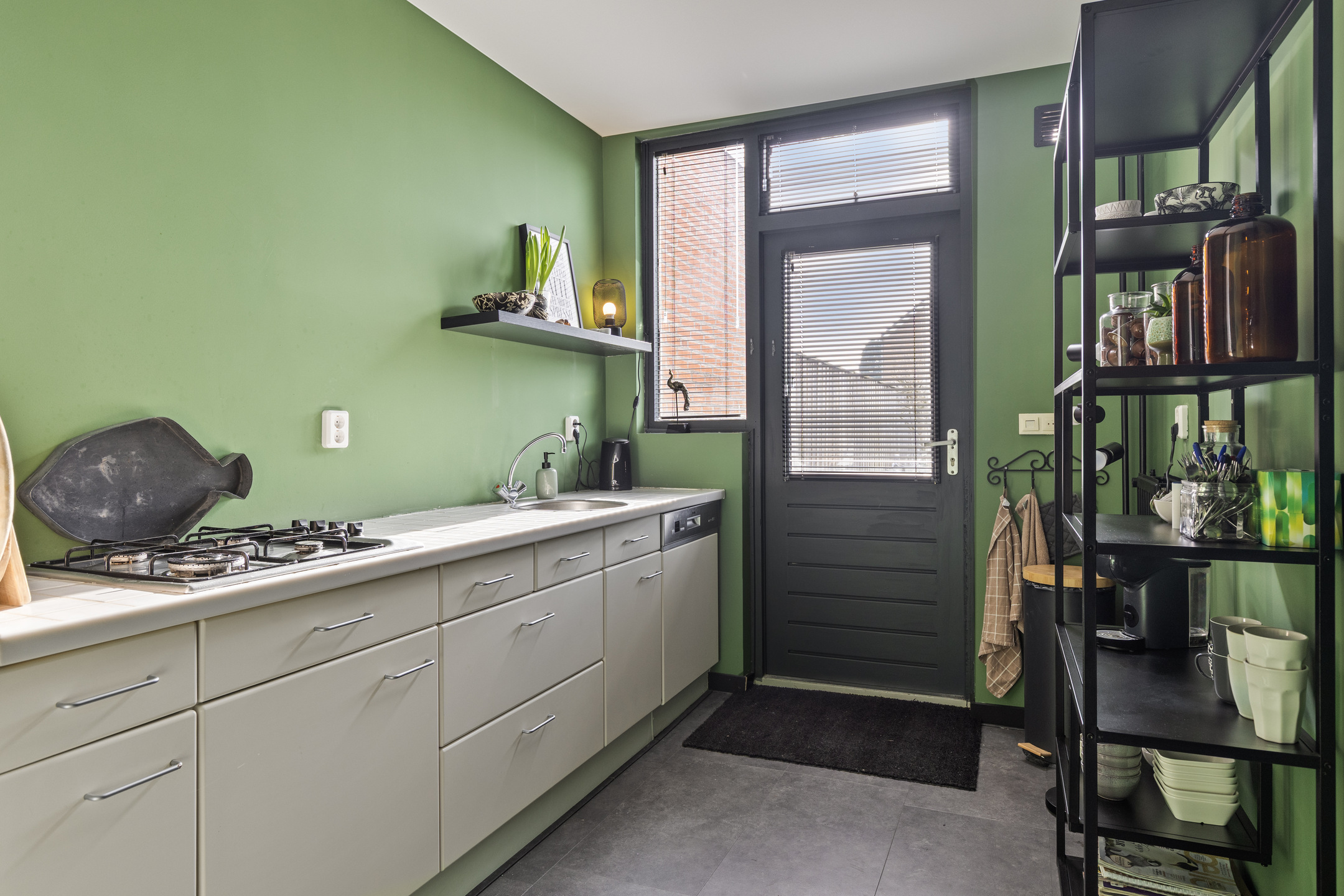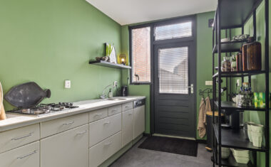 De keuken bevindt zich aan de achterzijde en kijkt uit over de tuin. Deze is functioneel ingericht (1992) en biedt een goede basis om geheel naar eigen wens te moderniseren. Vanuit de keuken loopt u direct de achtertuin in.