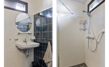 - Badkamer voorzieningen Toilet, douche, wastafel, wasmachineaansluiting