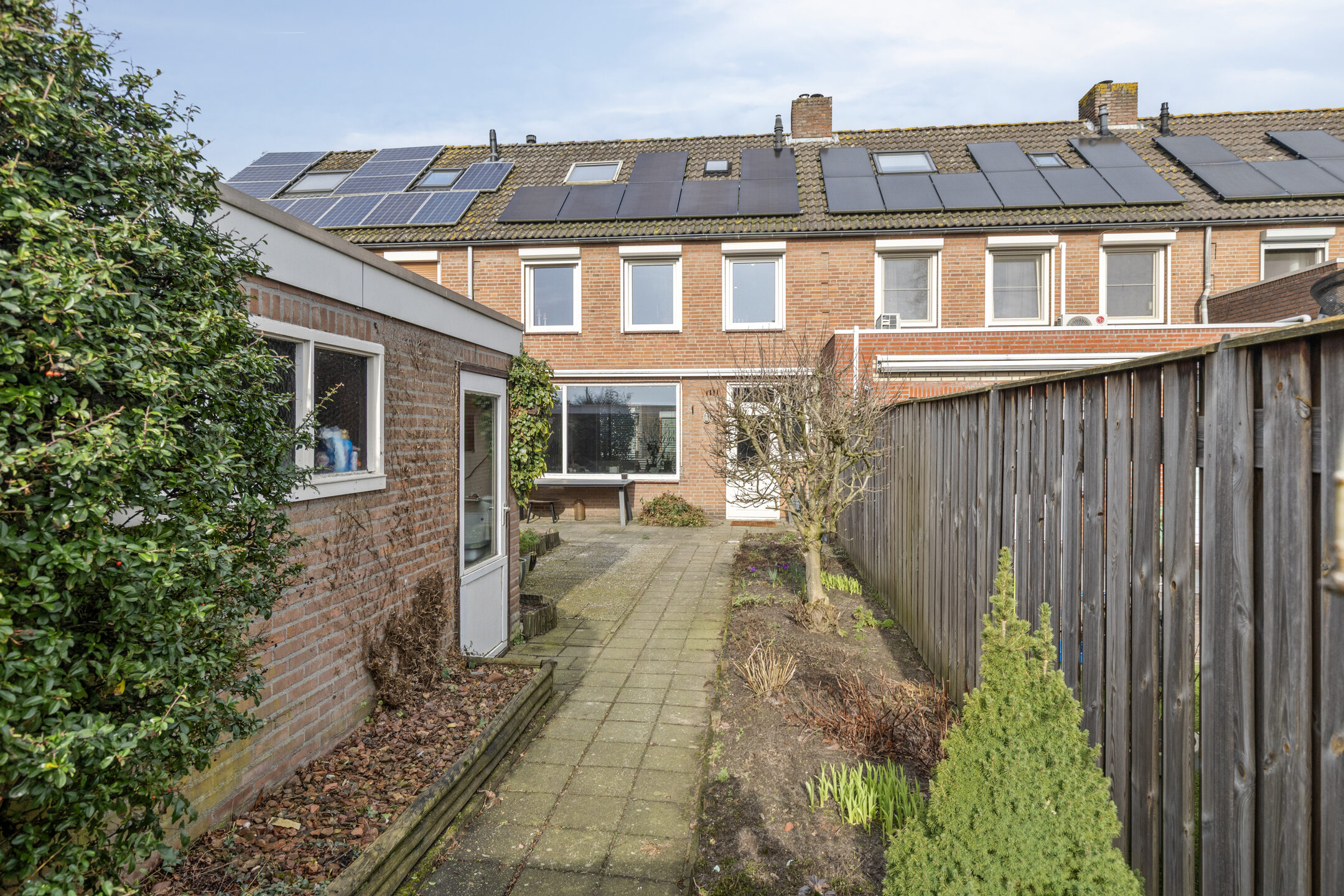 De woning beschikt over een verzorgde voortuin en een diepe achtertuin die grotendeels is bestraat en voorzien van borders met groen. Dankzij de gunstige ligging kunt u hier volop genieten van de zon. Achter in de tuin staat een stenen garage, ideaal voor auto, fietsen of tuingereedschap, en er is een achterom aanwezig.