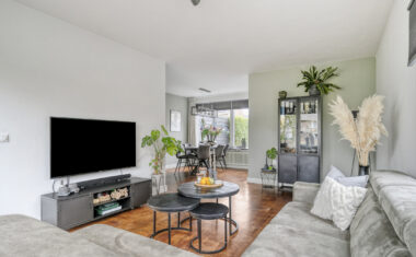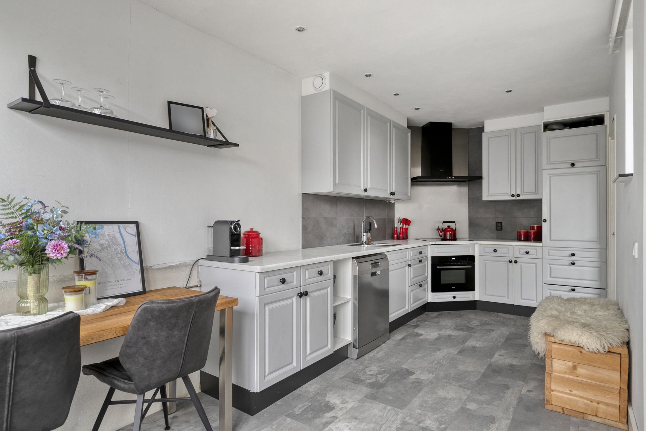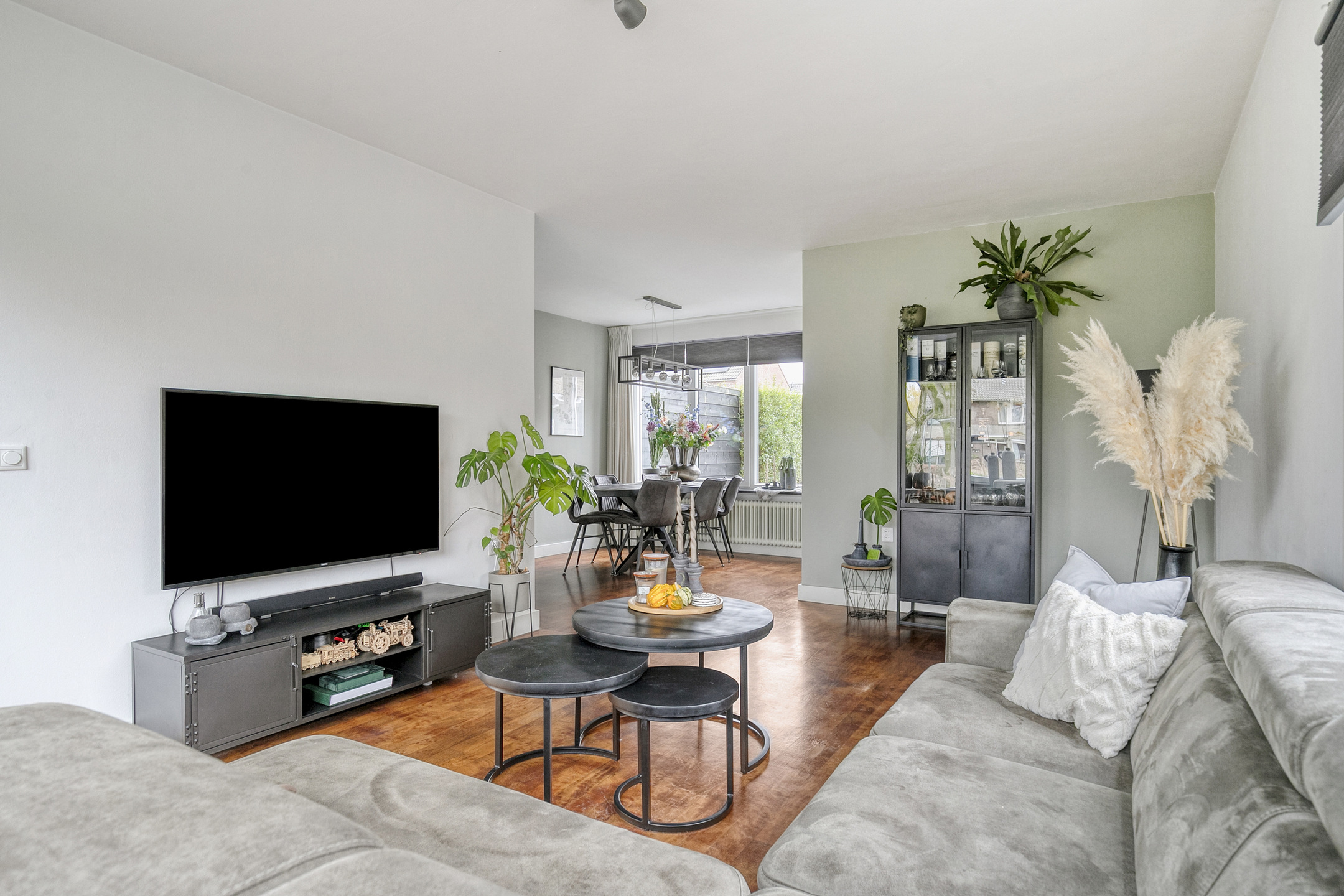 Via de entree kom je binnen in een lichte hal met vernieuwde meterkast, toilet en trapopgang. De woonkamer is dankzij de hoekligging extra ruimtelijk en licht, met aan de voorzijde uitzicht op het Antoniuspark. De Z-vorm zorgt voor een fijne verdeling tussen zit- en eethoek. Aansluitend bevindt zich de uitgebouwde, dichte keuken met praktische opstelling en diverse inbouwapparatuur. Vanuit de keuken loop je zo door naar de achtertuin.