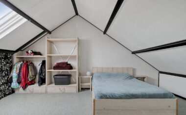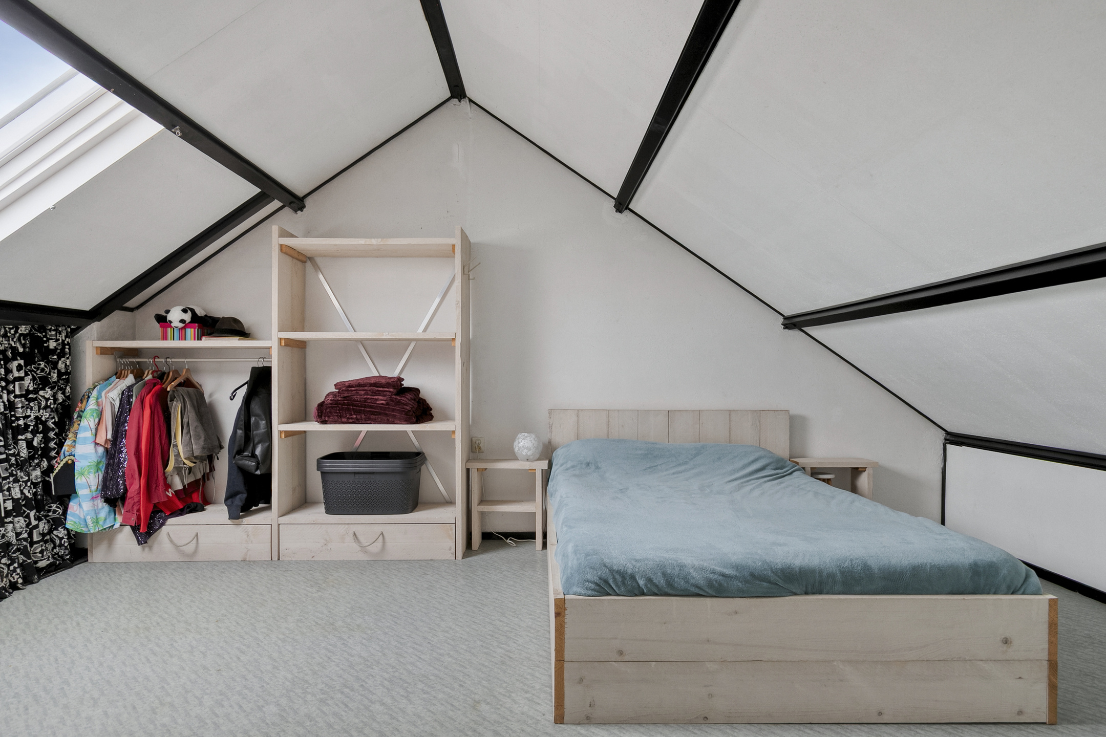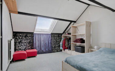 Voorzolder met CV-opstelling (Nefit 2016) en aansluiting voor witgoedapparatuur. Een royale derde slaapkamer met dakraam. Een fijne, volwaardige verdieping die uitstekend als slaap-, werk- of hobbyruimte kan worden gebruikt.