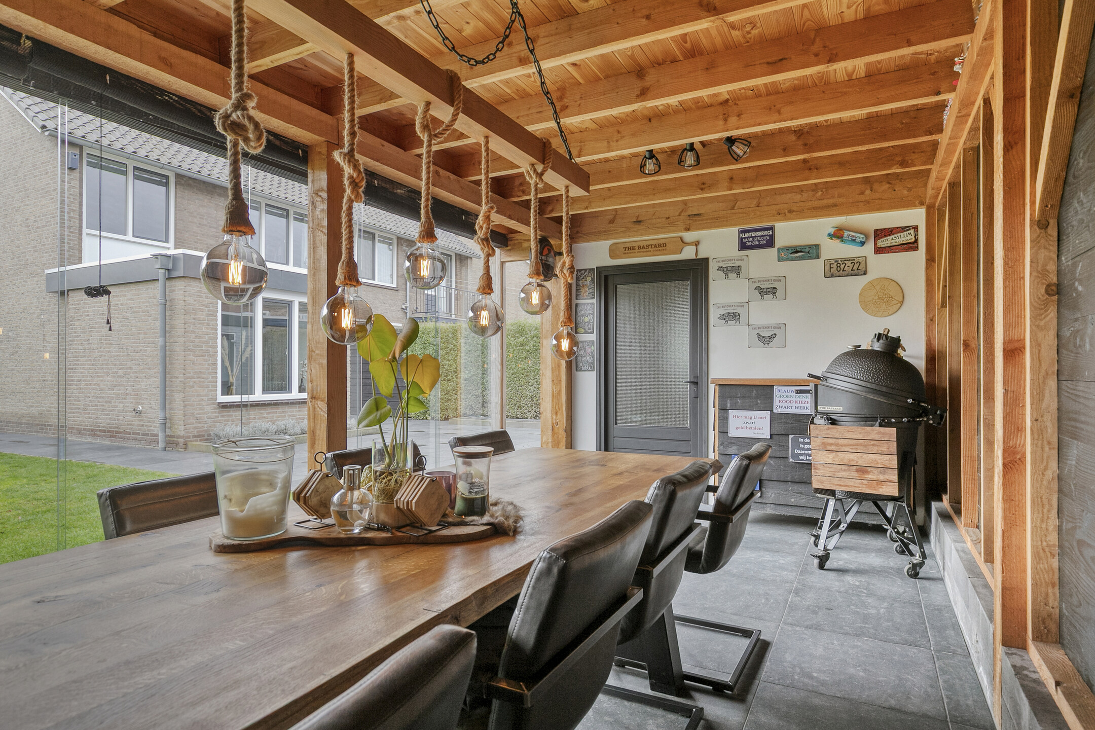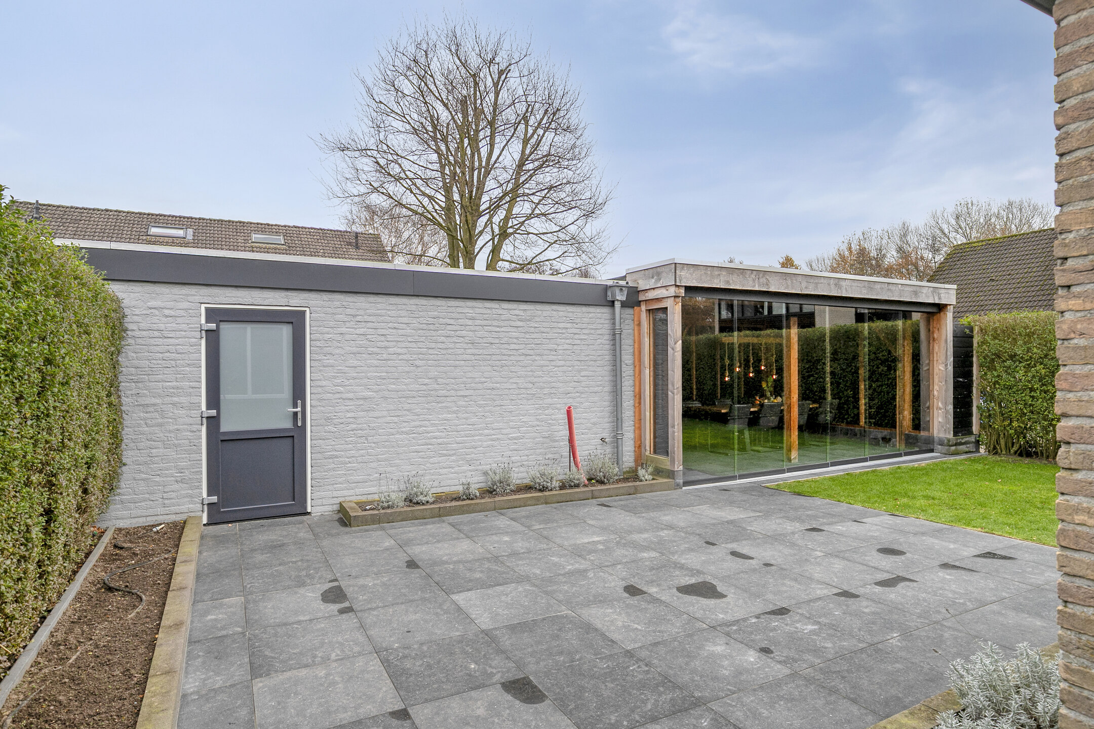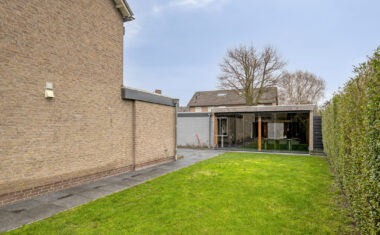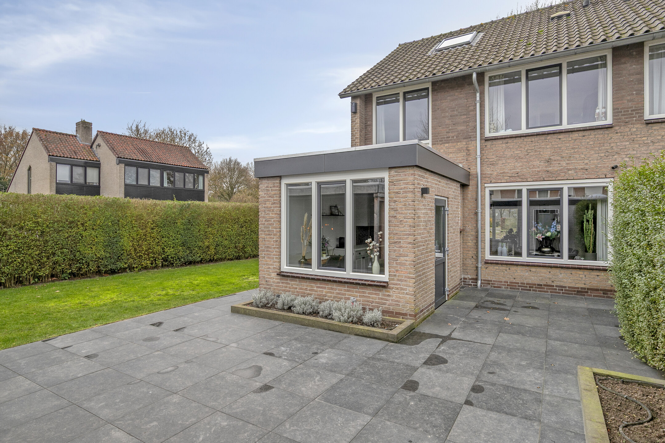 De woning beschikt over een ruime, zonnige tuin rondom, met aan de zijkant een heerlijke ligging op het zuiden. Hier geniet je de hele dag van de zon. Het grote terras met tegels biedt volop ruimte voor een loungeset, eettafel en zomerse barbecues. Via de achterom is de tuin praktisch bereikbaar, ideaal voor fietsen, tuingereedschap of bezoek.