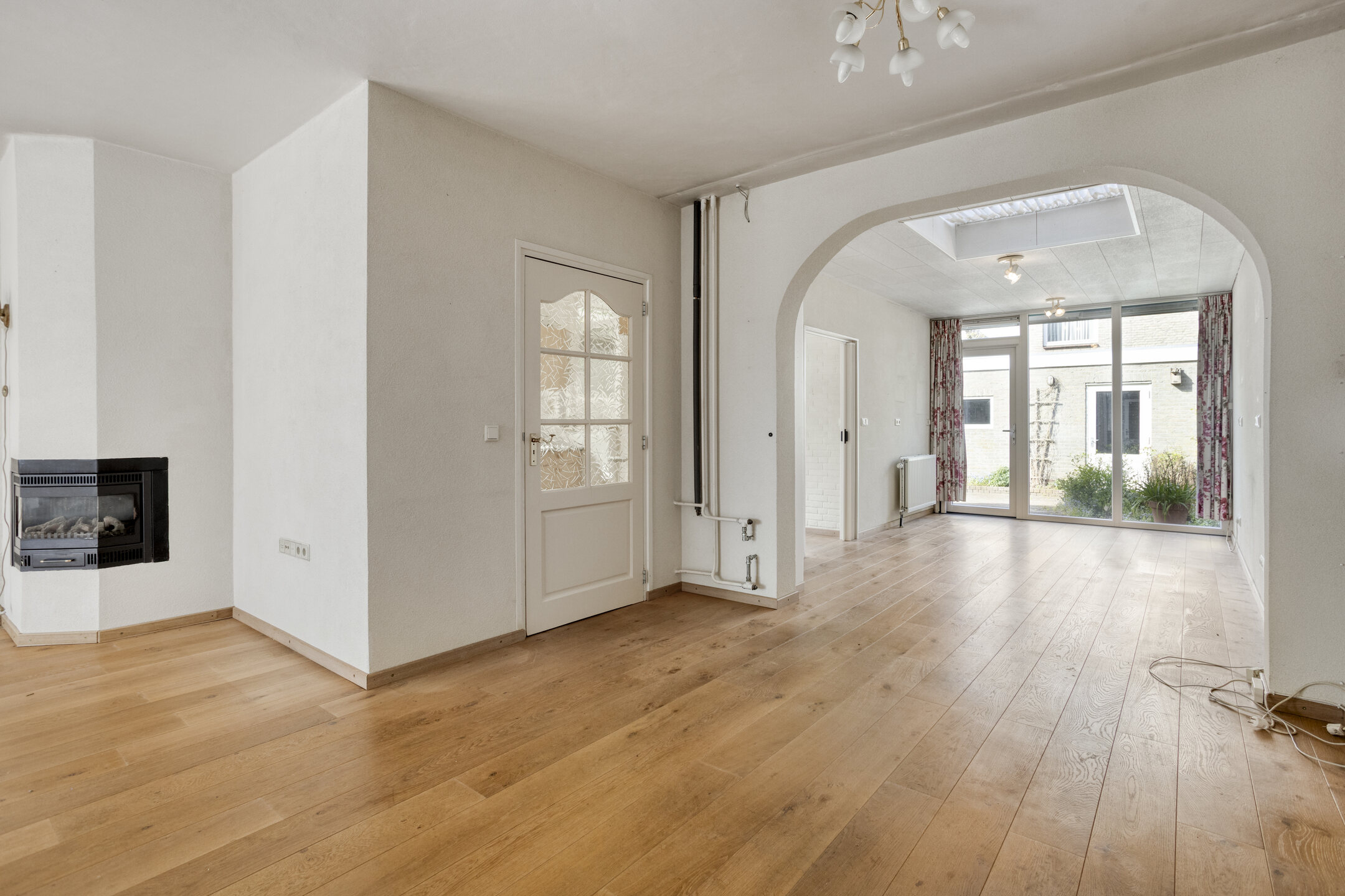 Via de entree kom je binnen in de hal met toilet en trapopgang naar de eerste verdieping. De ruime en lichte woonkamer beschikt over een sfeervolle eiken vloer en haard en biedt toegang tot de eetkamer. Deze eetkamer is voorzien van een lichtkoepel wat zorgt voor een prettige lichtinval, en een deur naar de tuin.