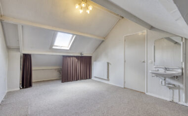 Bereikbaar via een vaste trap. Overloop met opstelling van de cv-installatie en bergruimte. Deze verdieping biedt de mogelijkheid tot het realiseren van een vierde slaapkamer.