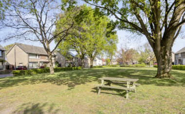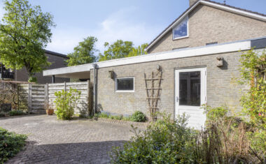 De tuin is gelegen aan de achterzijde én zijkant van de woning en is ingericht met een combinatie van beplanting en bestrating. Hierdoor is er een fijne balans tussen groen en onderhoudsvriendelijke terrassen. Daarnaast beschikt de woning over een garage met carport, wat zorgt voor voldoende parkeergelegenheid en extra bergruimte.