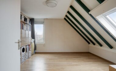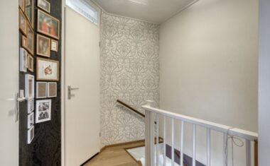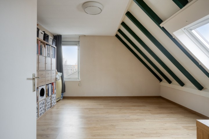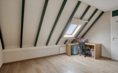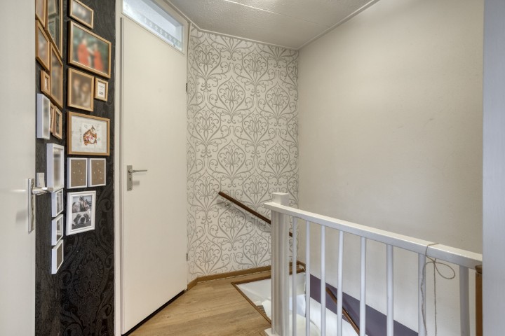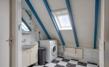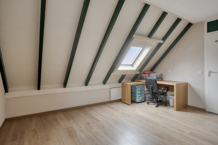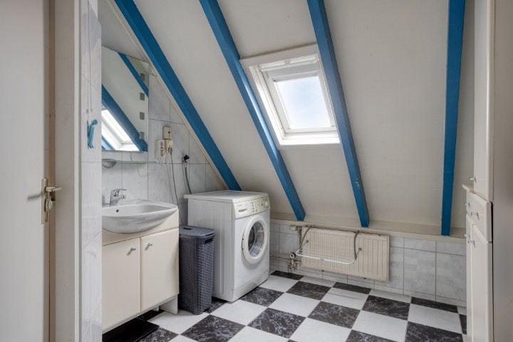Via de vaste trap bereik je de verdieping met een ruime overloop en handige inbouwkast. De royale slaapkamer beschikt over een laminaatvloer en een kantelraam voor frisse lucht en daglicht. De badkamer is functioneel en uitgerust met douche, wastafel, witgoedaansluitingen én een raam.