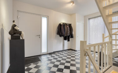 Via de entree kom je binnen in de hal met trapopgang en toegang tot de verschillende vertrekken.