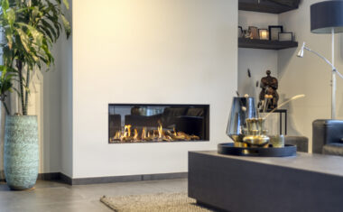 – woonkamer met tegelvloer en sfeervolle gashaard (2016).