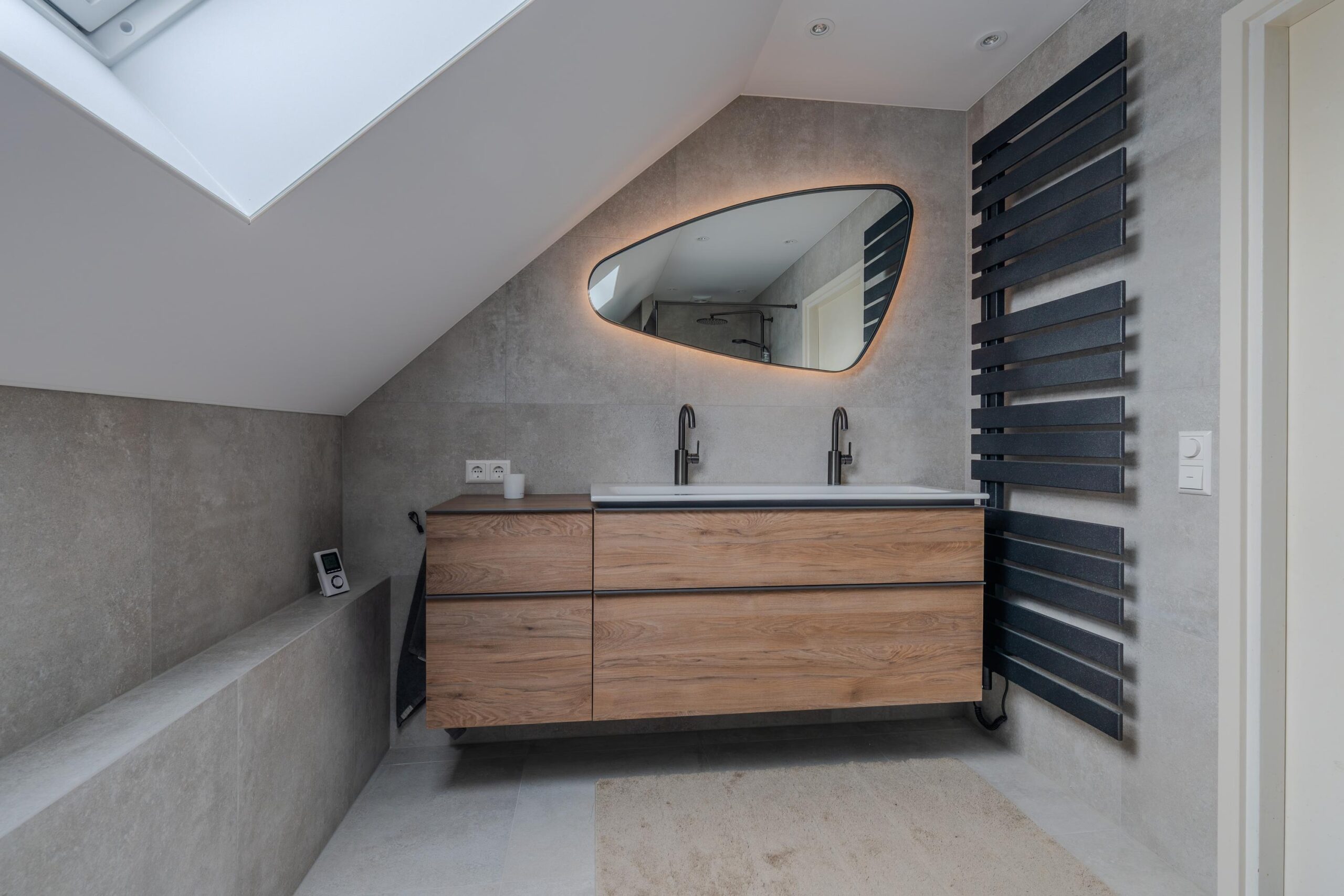 De verdieping biedt ruimte aan 4 slaapkamers en een moderne badkamer. Deze badkamer is vernieuwd in 2025 en uitgevoerd met een inloopdouche, wastafelmeubel en toilet, geheel in eigentijdse stijl en afwerking.