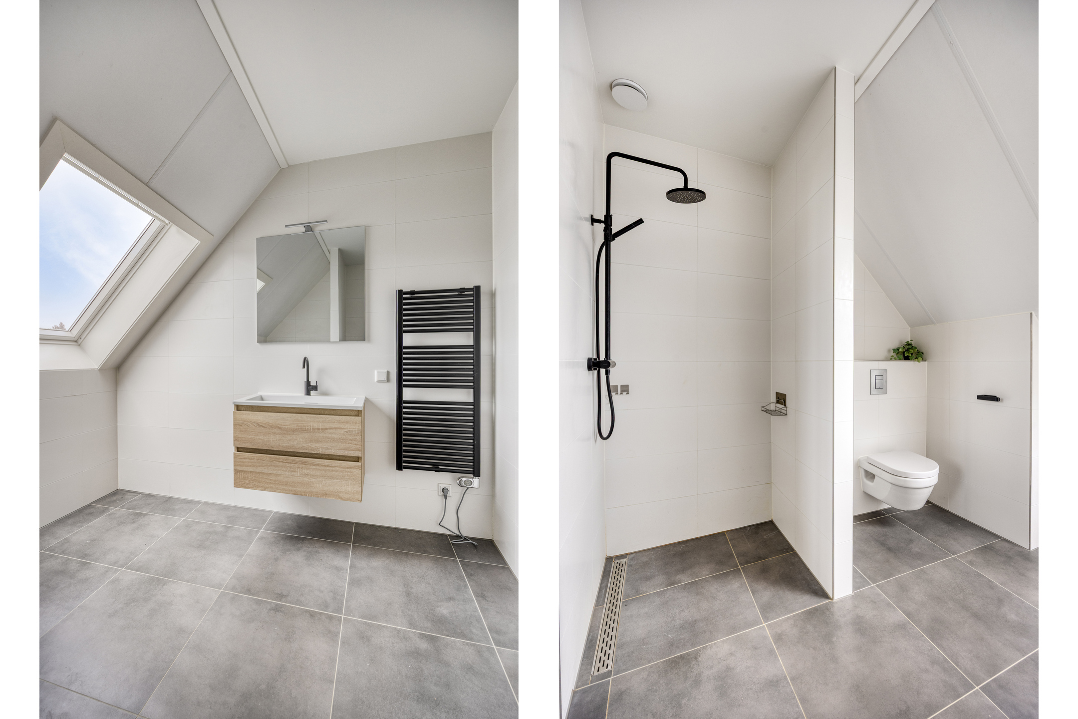 Op de eerste verdieping bevinden zich drie ruime slaapkamers en een moderne badkamer, voorzien van een douche, toilet en wastafel.