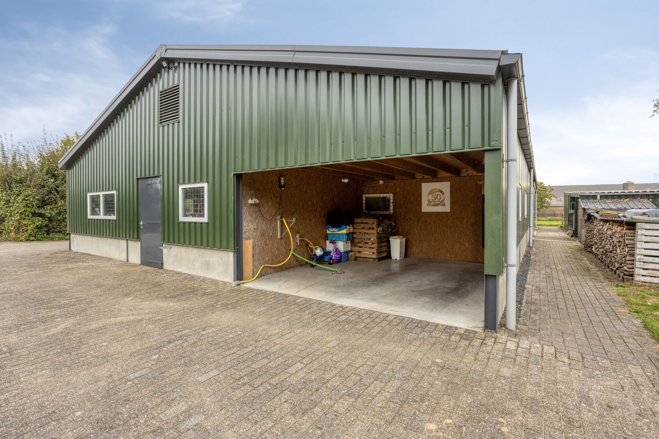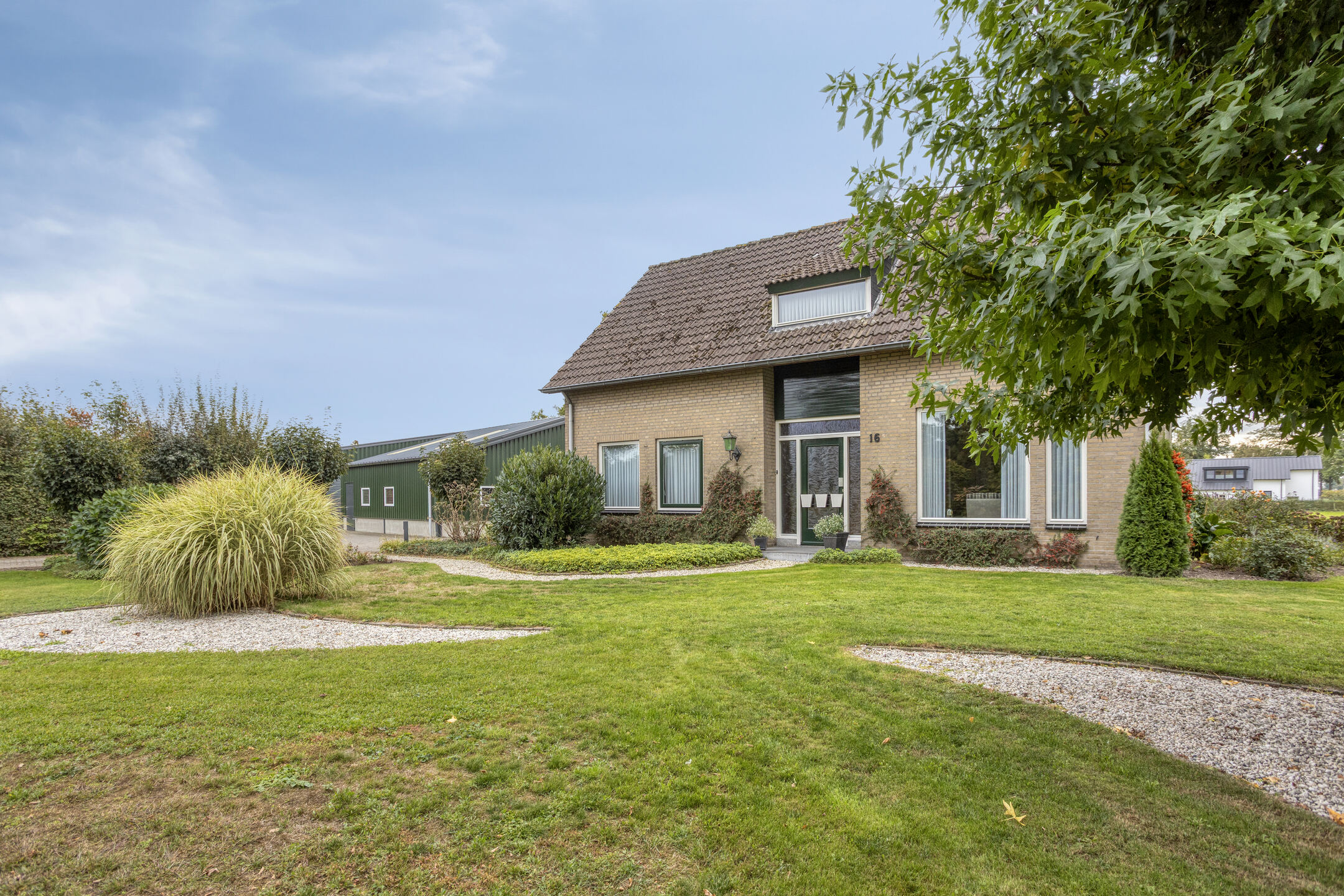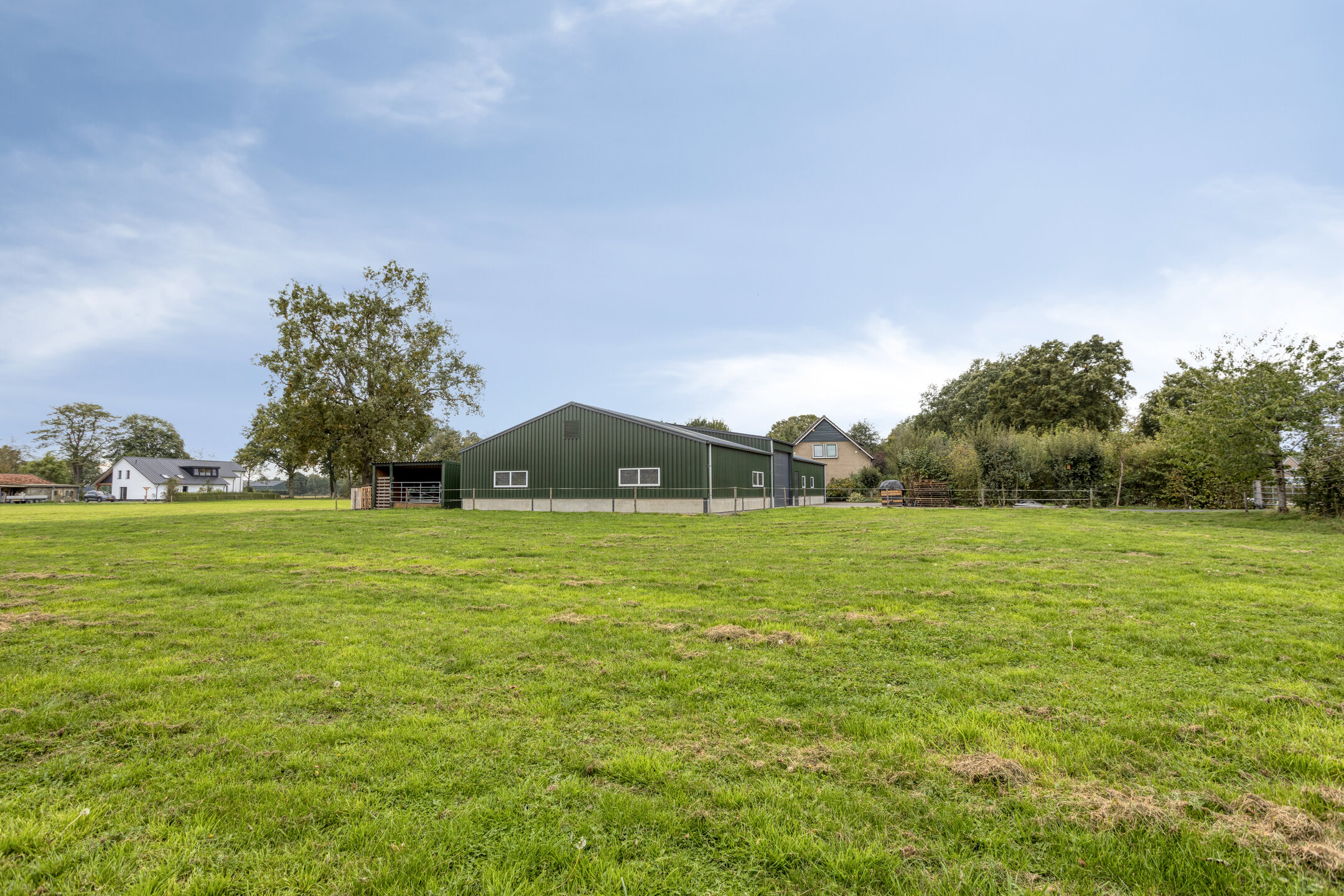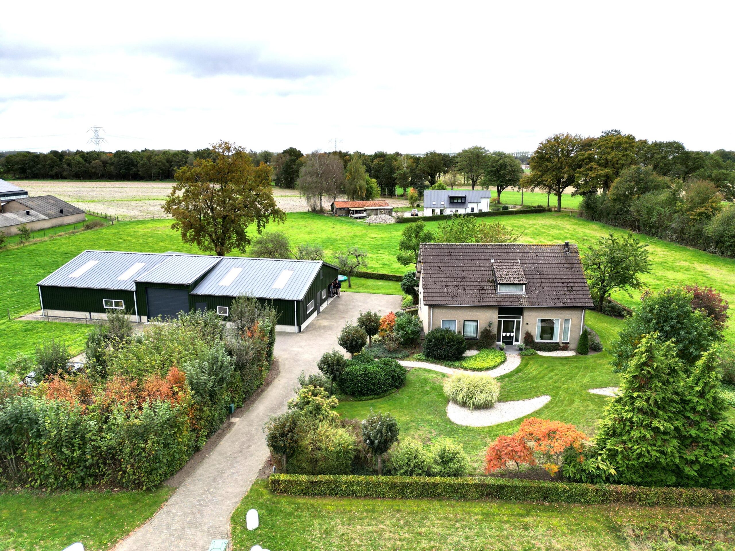 De woning met loods staat op een royaal perceel van 12.617 m², bestaande uit een verzorgde tuin rondom de woning en een grote weide die zich perfect leent voor het houden van paarden, kleinvee of het realiseren van een moestuin. De oprit biedt voldoende parkeergelegenheid voor meerdere auto’s, en er is een ruime vrijstaande schuur aanwezig voor opslag of hobbyruimte.