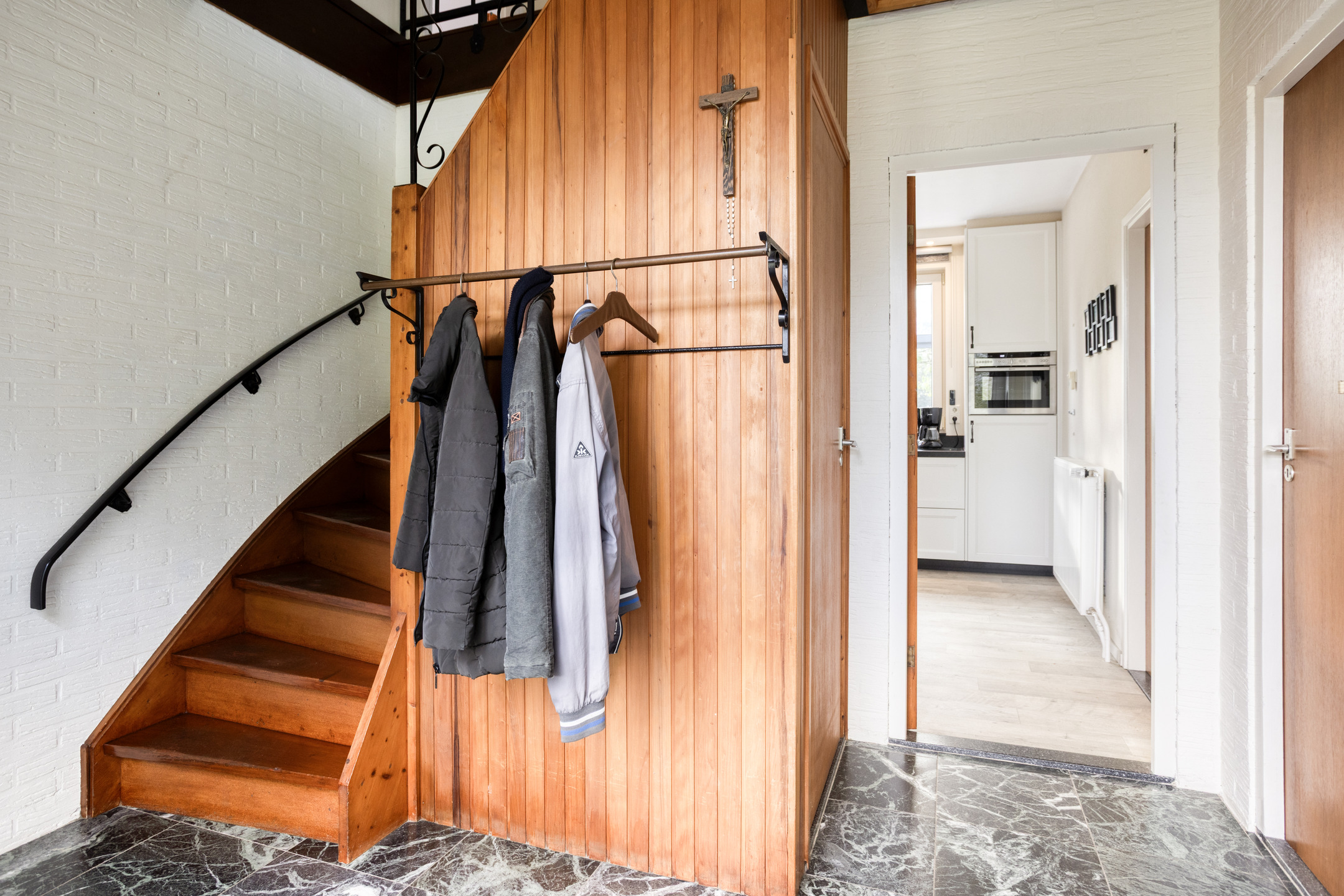 Via de voordeur kom je binnen in de ruime entree met trapopgang en toegang tot de woonkamer, slaapkamer en keuken.