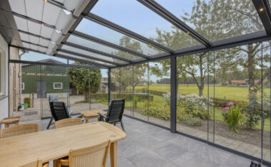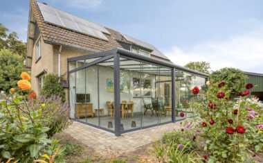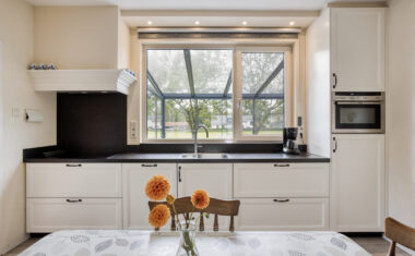 – achterdeur en keukenraam aluminium/kunststof.