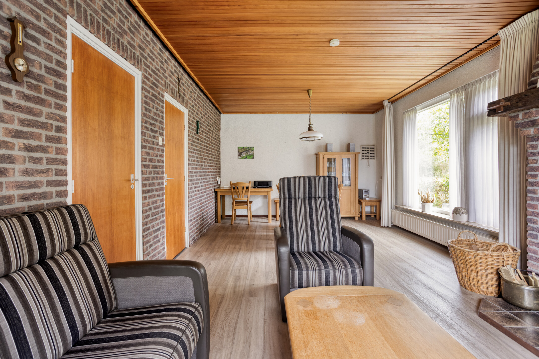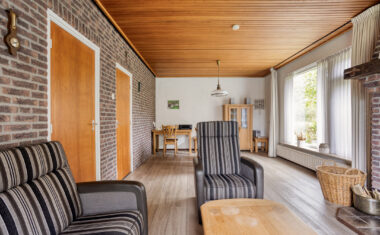 De lichte woonkamer met houtkachel kijkt uit over de groene tuin. De keuken (2014) is voorzien van inbouwapparatuur: Quooker, inductiekookplaat, afzuigkap, combimagnetron, vaatwasser en koelkast en geeft toegang tot de praktische bijkeuken met witgoedaansluitingen en een apart toilet. Aan de achterzijde bevindt zich een ruime serre, waar je het hele jaar door kunt genieten van het uitzicht op de tuin en weide. Verder is er op de begane grond een slaapkamer aanwezig, ideaal als hoofdslaapkamer of kantoor aan huis.