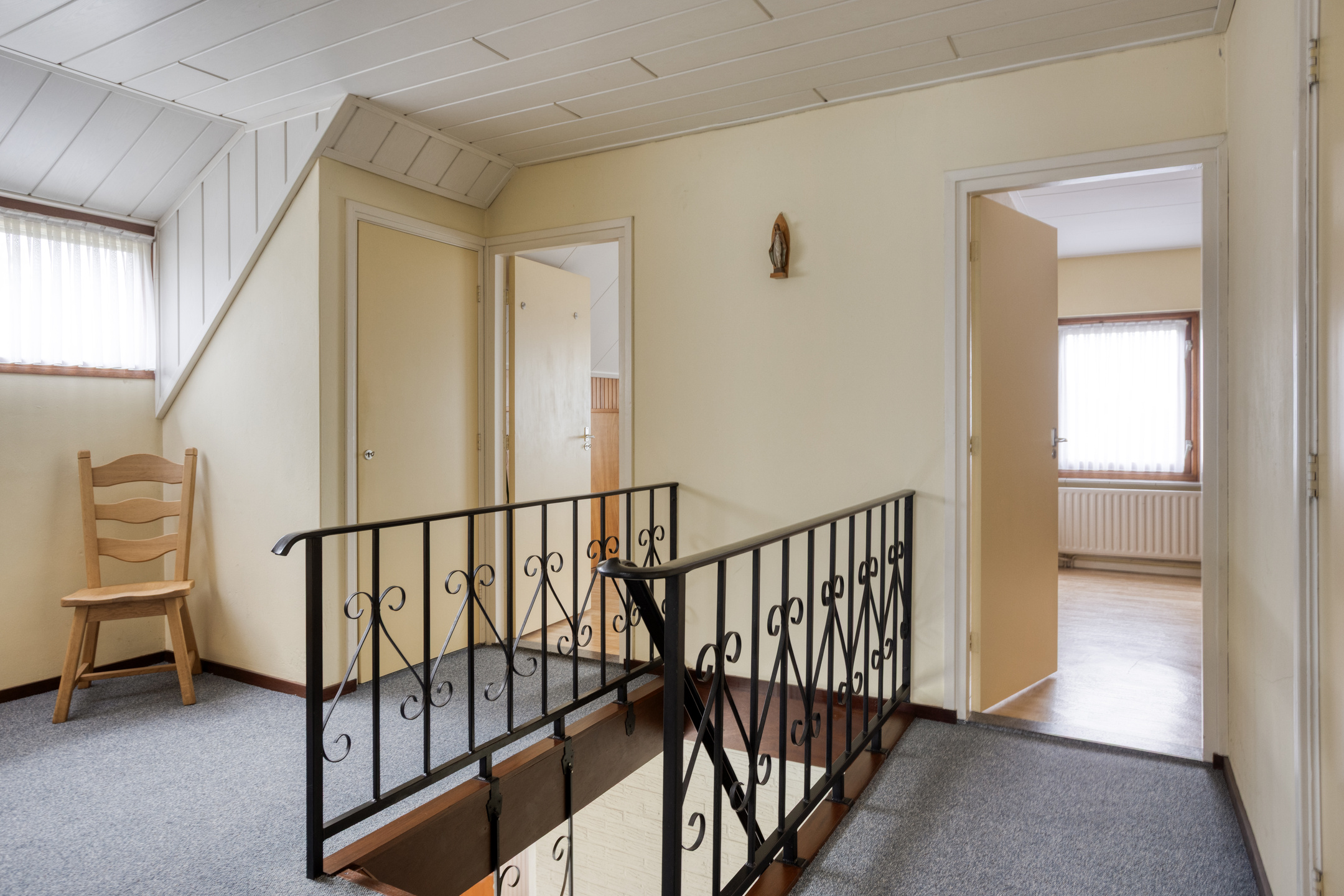 De overloop biedt toegang tot vier ruime slaapkamers en de badkamer (2002). De kamers zijn netjes afgewerkt en voorzien van vaste opbergkasten. De badkamer is centraal gelegen en uitgerust met een ligbad, douche, wastafel en toilet.