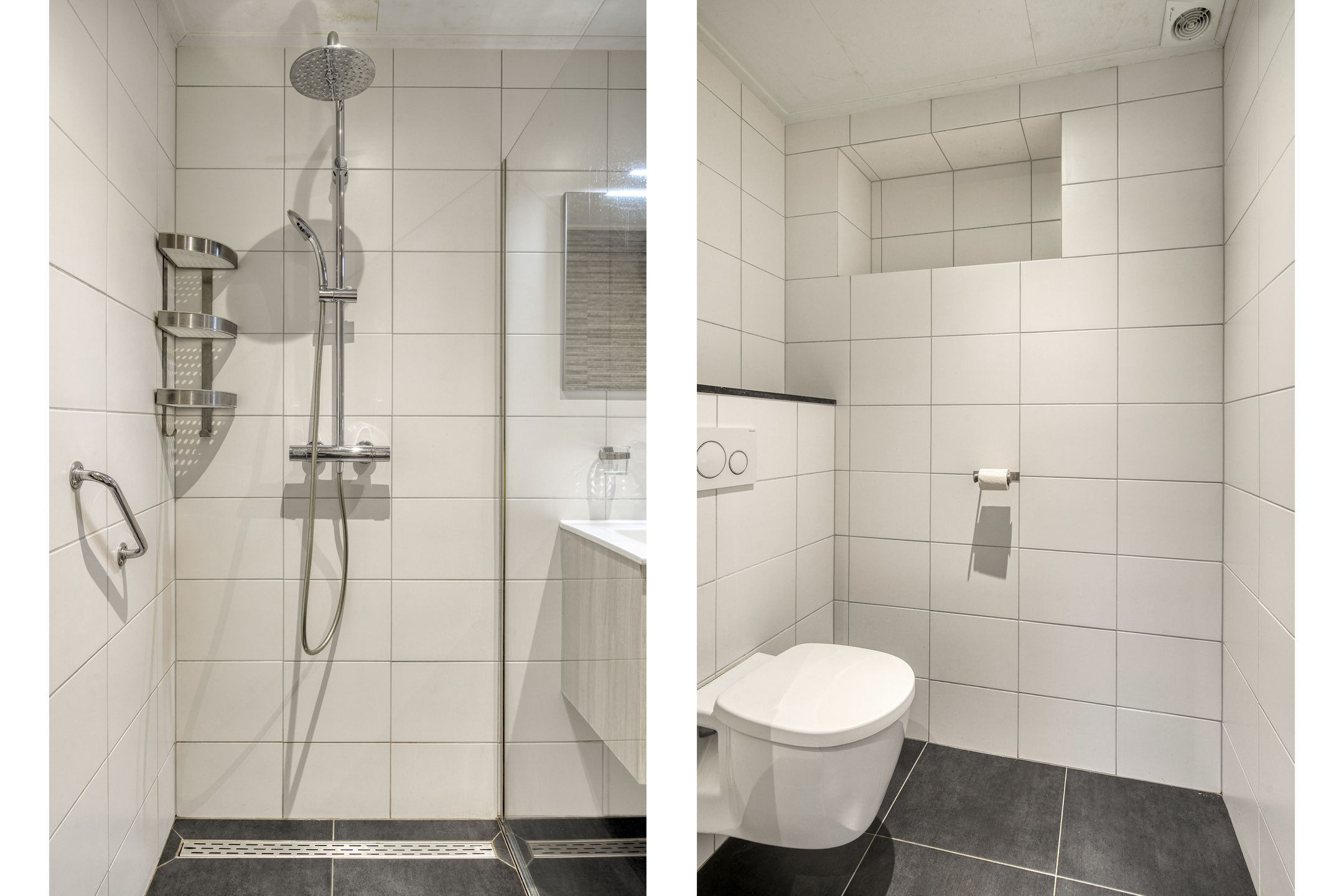 - Badkamer voorzieningen Toilet, douche, wastafel, toilet, wastafel, wasmachineaansluiting