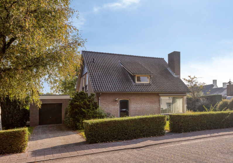 Een oprit met eigen parkeergelegenheid en een overkapping. Verder leidt de hal je naar een toilet, een handige ruime garage en de sfeervolle woonkamer.