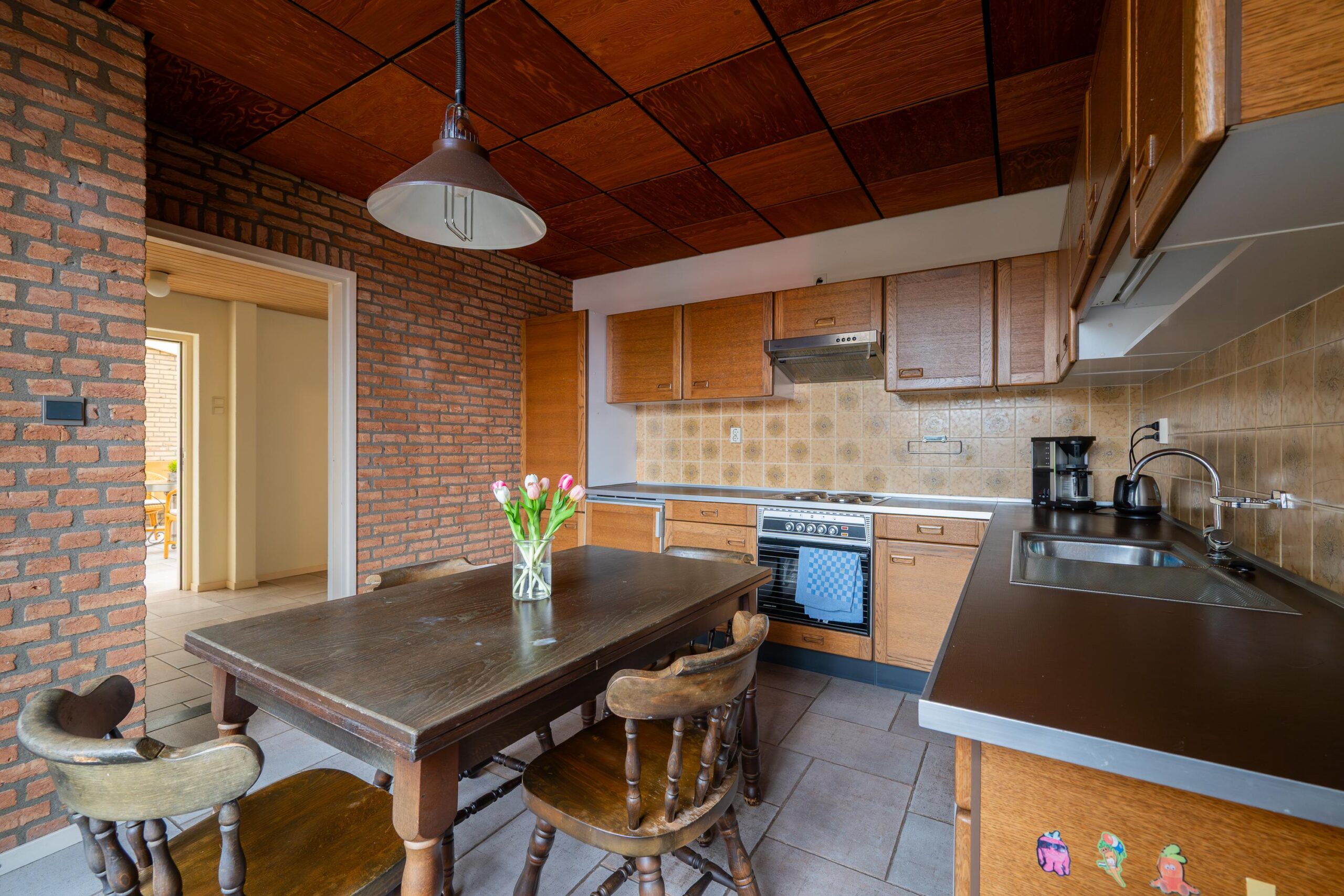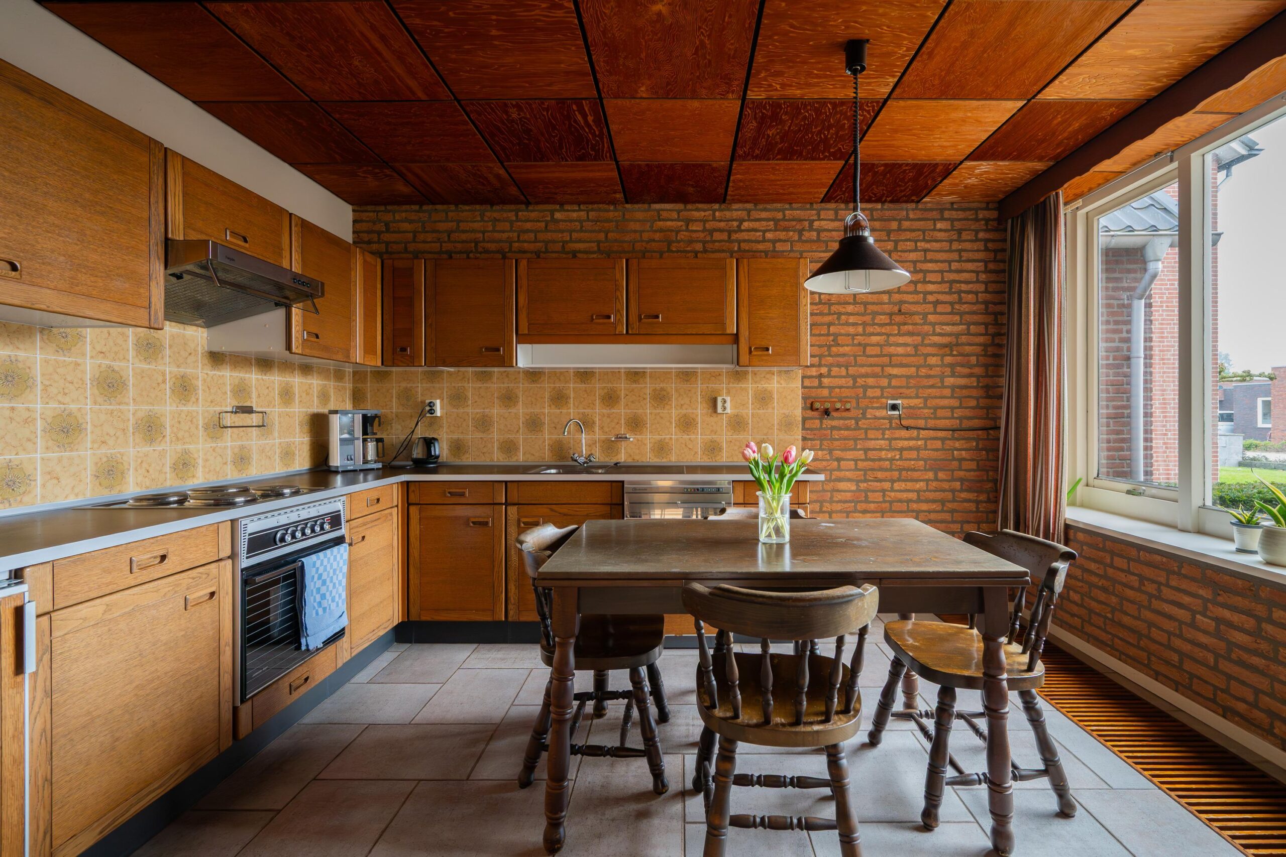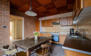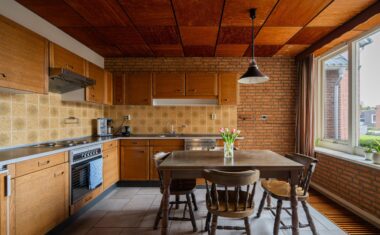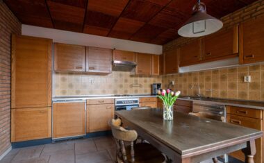 De keuken is afgesloten en bereikbaar vanuit de woonkamer. Deze is gedateerd maar netjes onderhouden en biedt mogelijkheden om geheel naar eigen wens te moderniseren.
