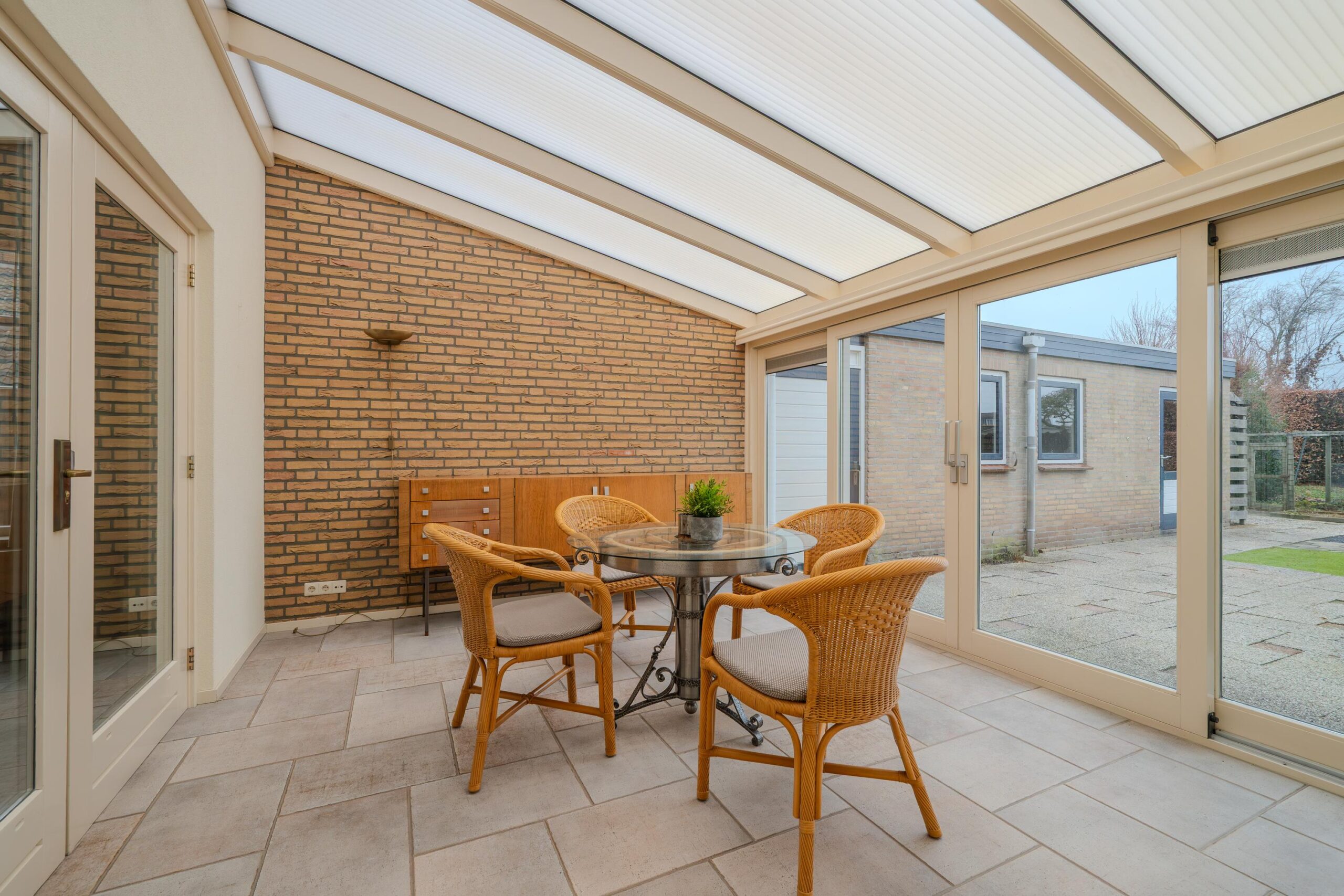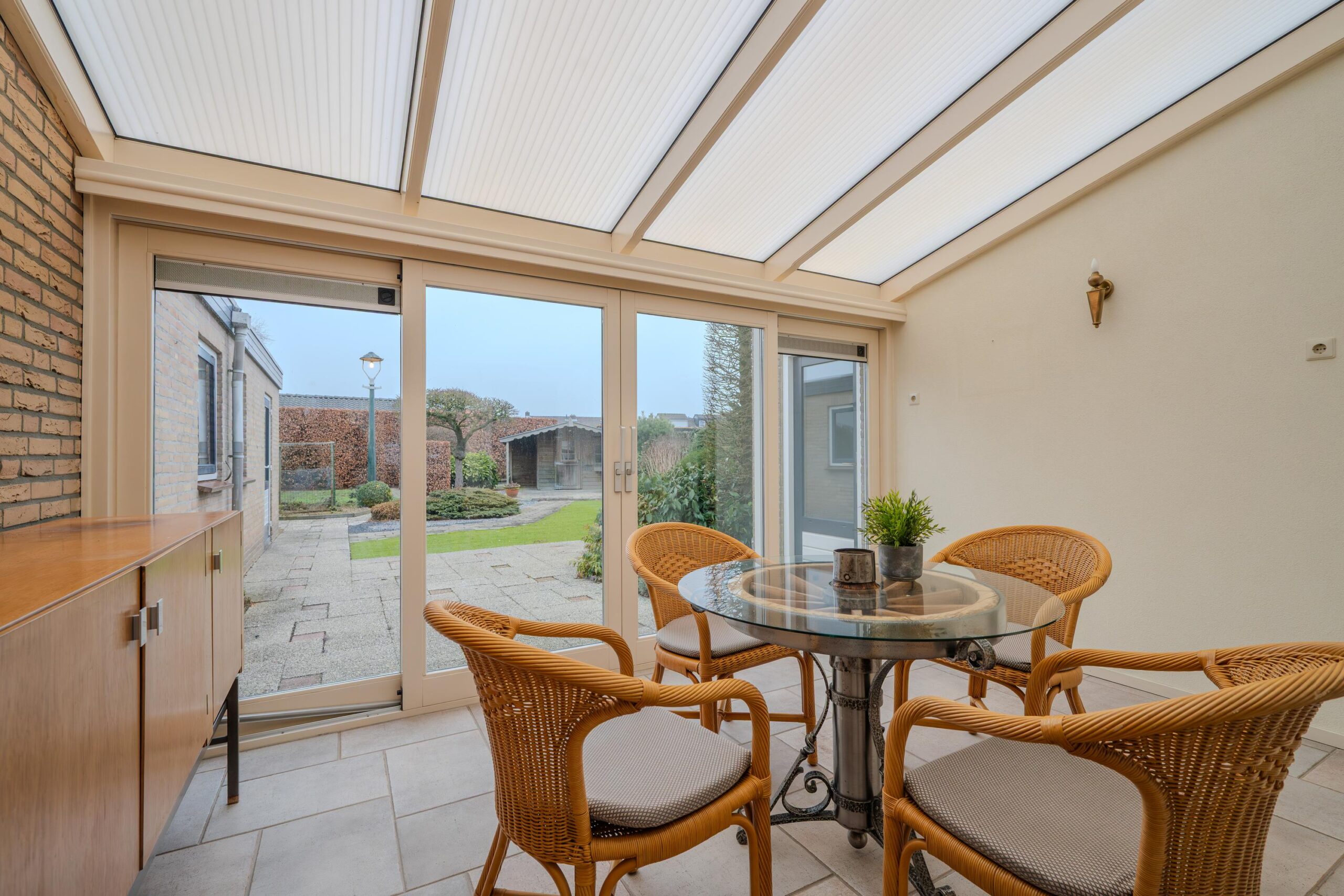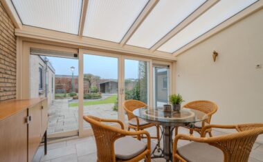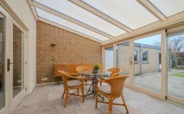 Aan de achterzijde van de woning bevindt zich de serre, een fijne extra leefruimte met uitzicht op de tuin. De serre is voorzien van vloerverwarming en vormt een mooie verbinding tussen binnen en buiten.