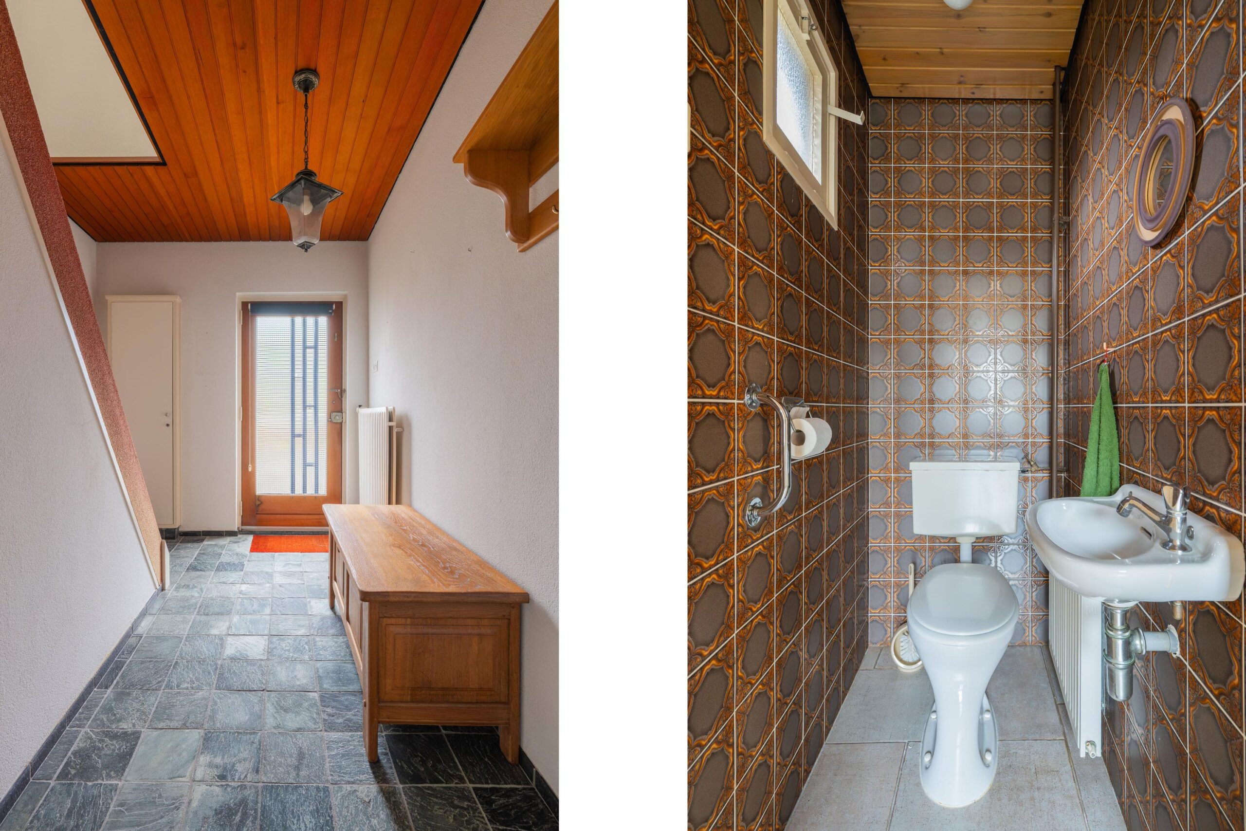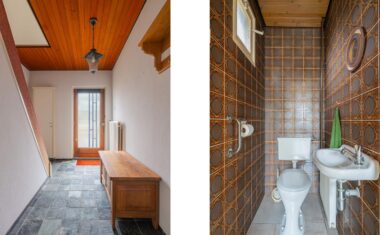 Via het achterportaal, met een extra wastafel, is er toegang tot het separate toilet, de bijkeuken en de achtertuin.