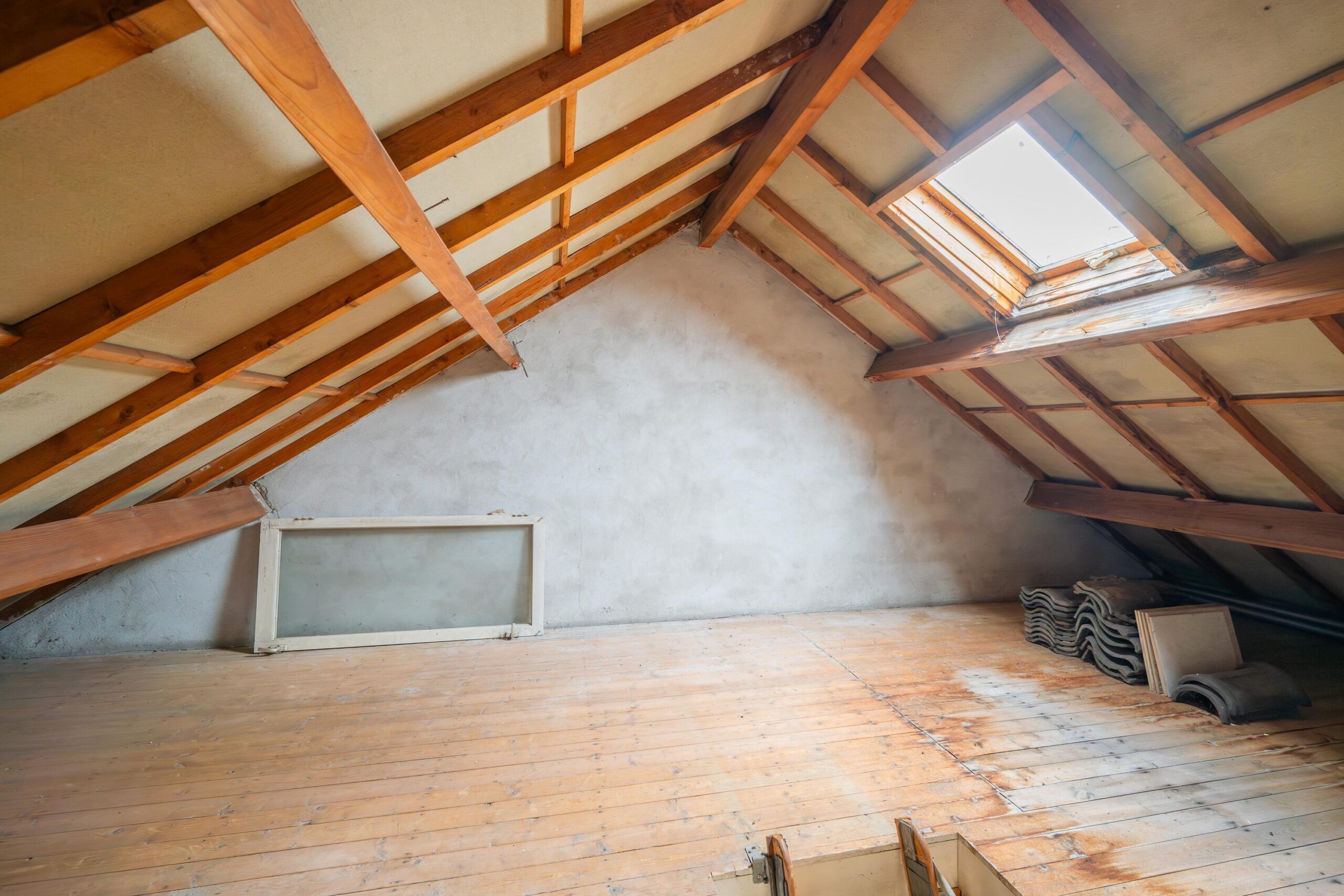 Via een vlizotrap is de bergzolder bereikbaar. Hier bevindt zich de CV-opstelling (Nefit gas-combiketel) en is er volop bergruimte aanwezig.