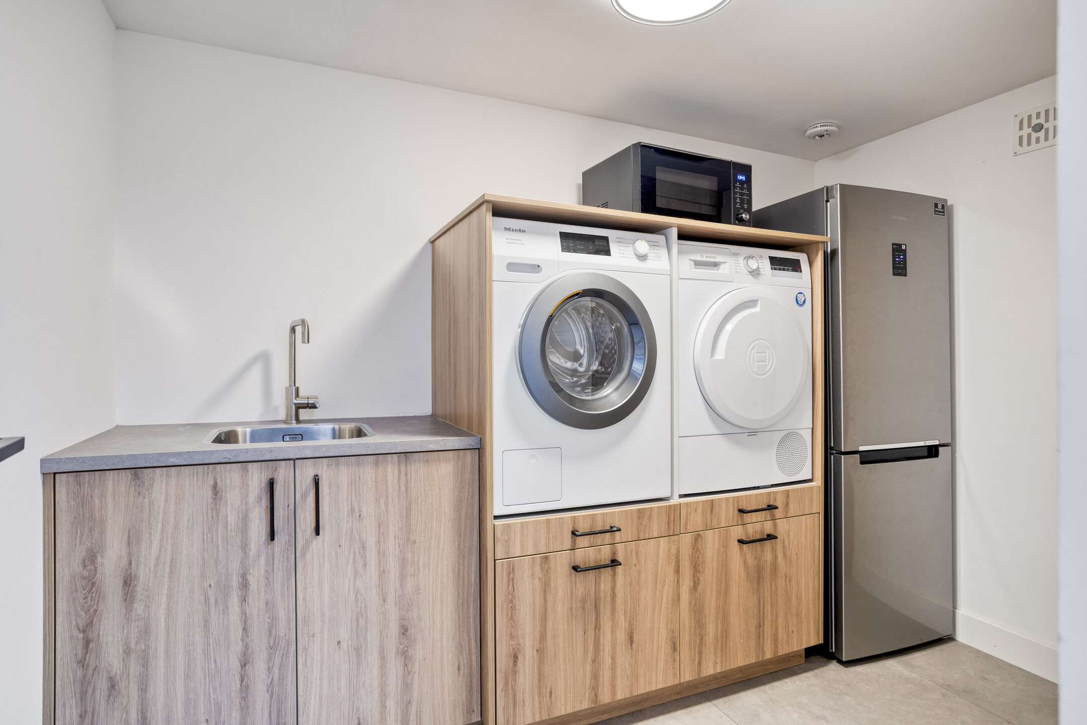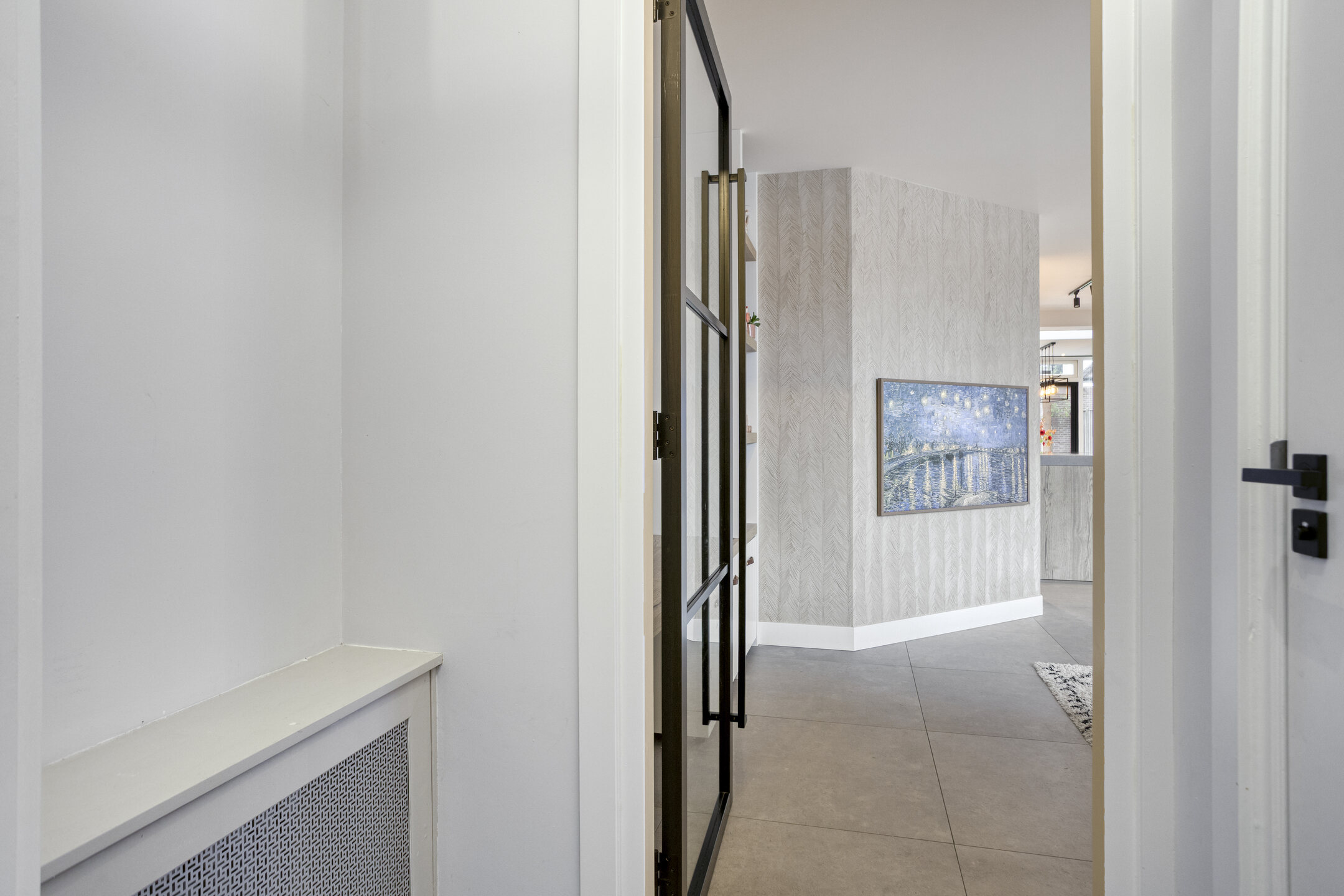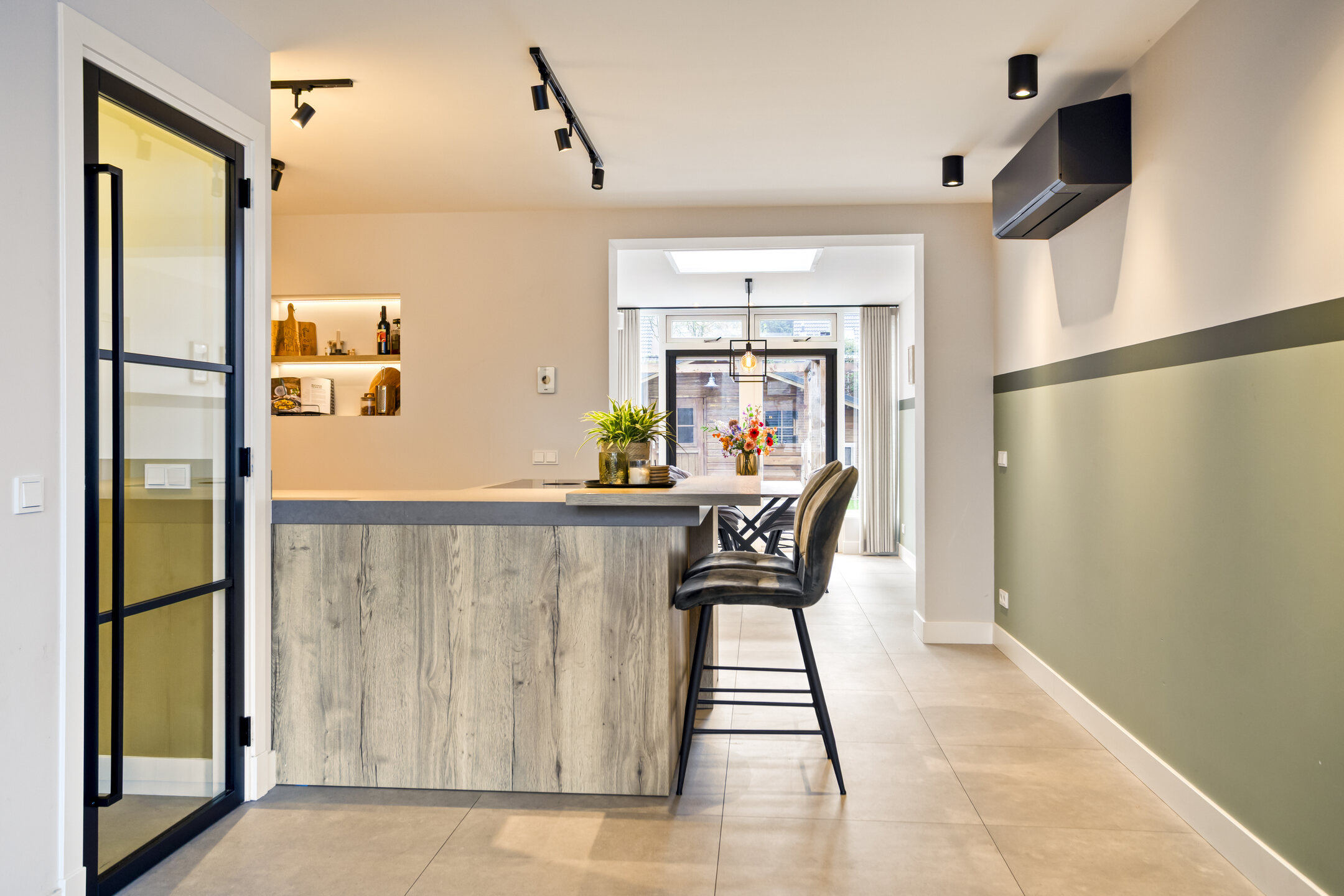 Via de entree bereik je de hal met meterkast en toilet (2021). De lichte woonkamer staat in open verbinding met de keuken. De keuken is uitgerust met een inductiekookplaat met geïntegreerde afzuiging, Quooker, afzuigkap, vaatwasser, koelkast en combi-stoomoven.