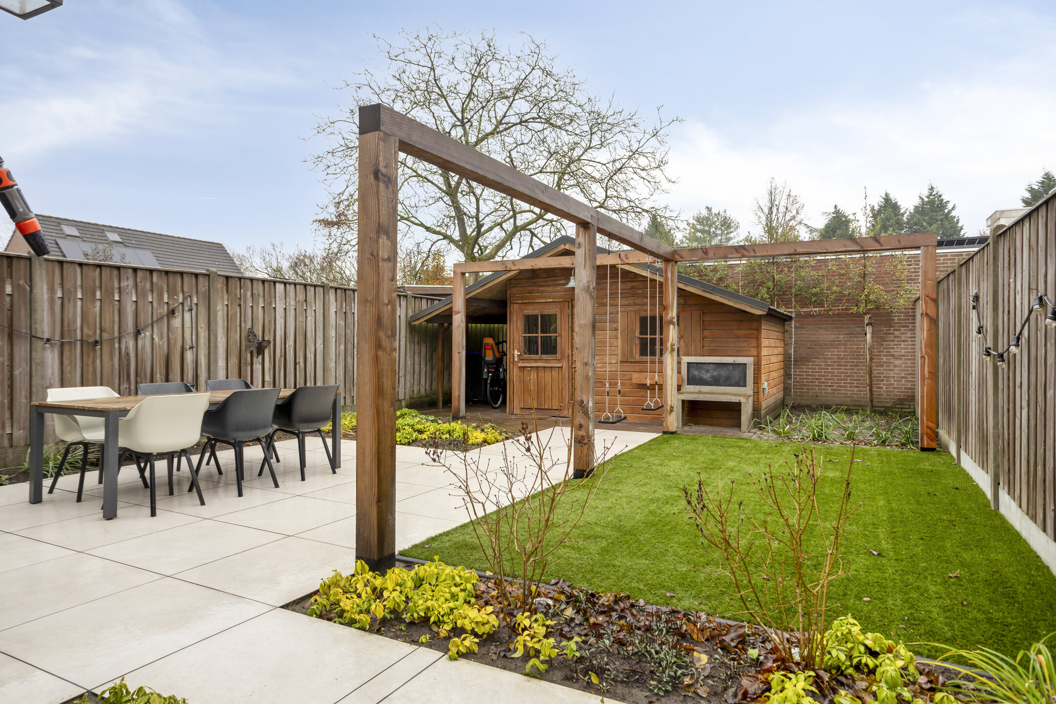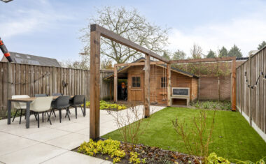De woning beschikt over een ruime, zonnige, in 2024 aangelegde achtertuin op het zuiden met veel privacy. Aan de achterzijde staat een houten tuinhuis.