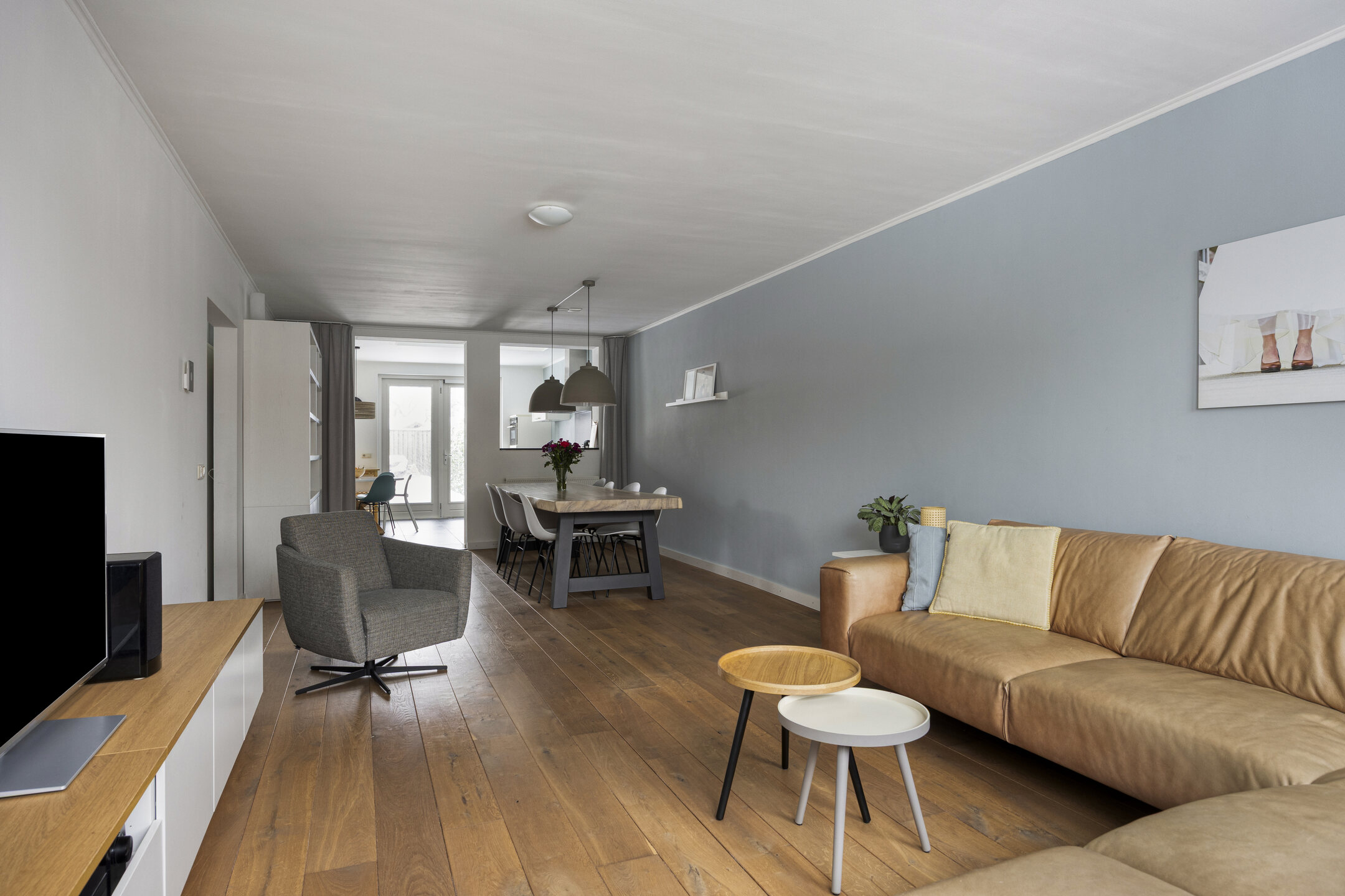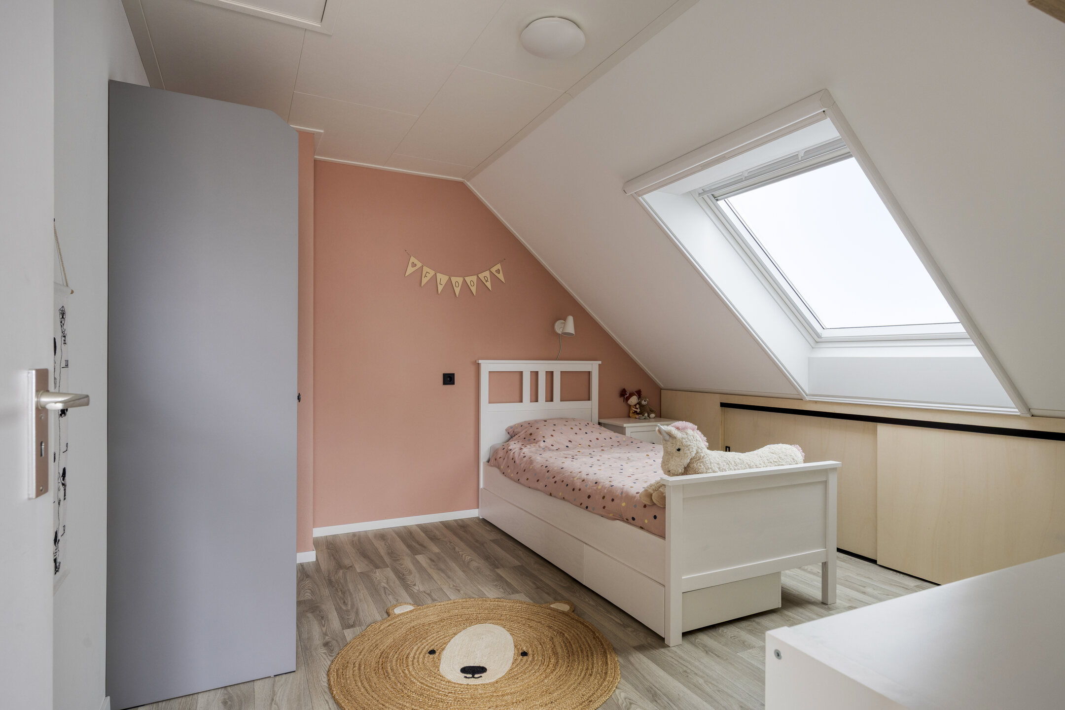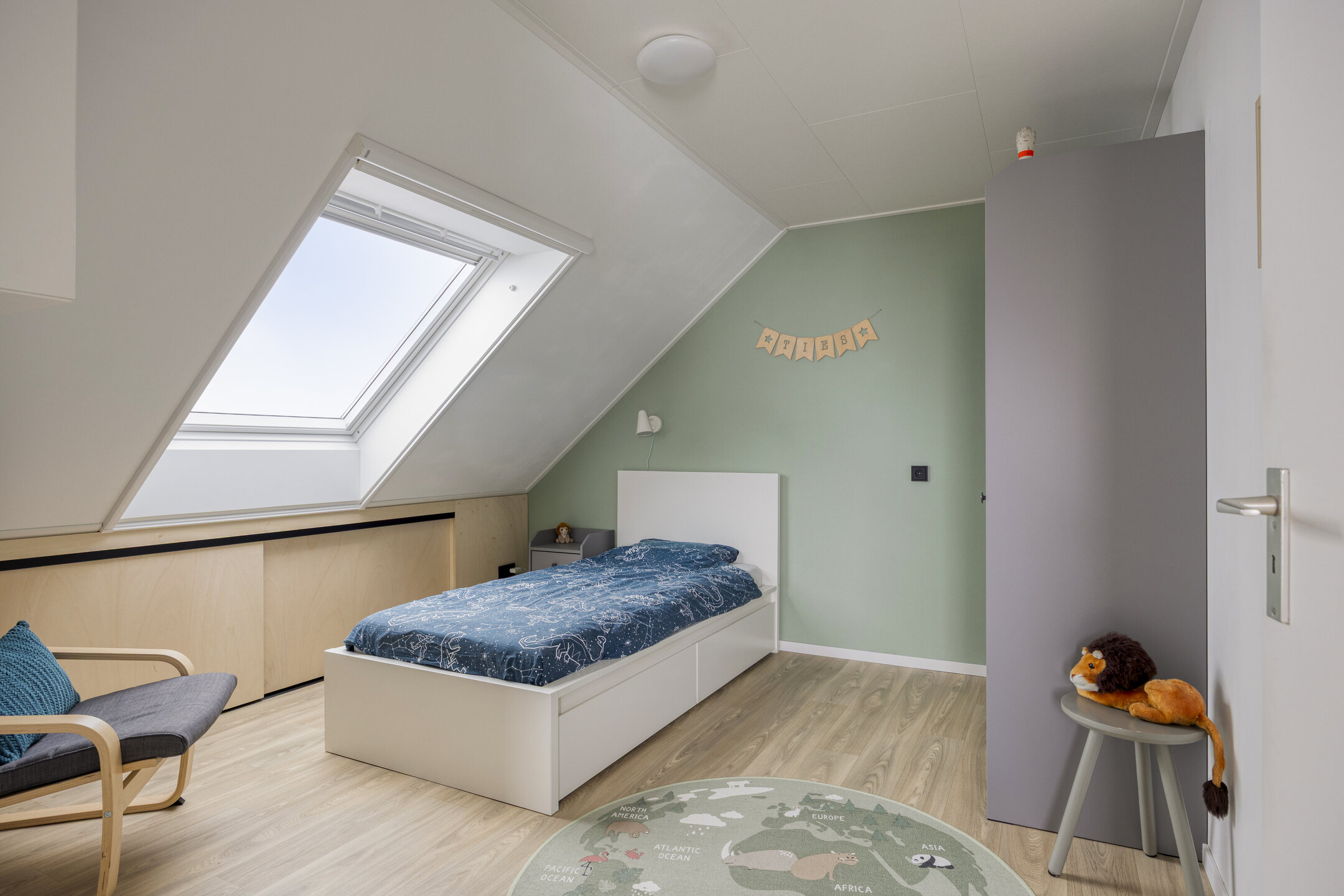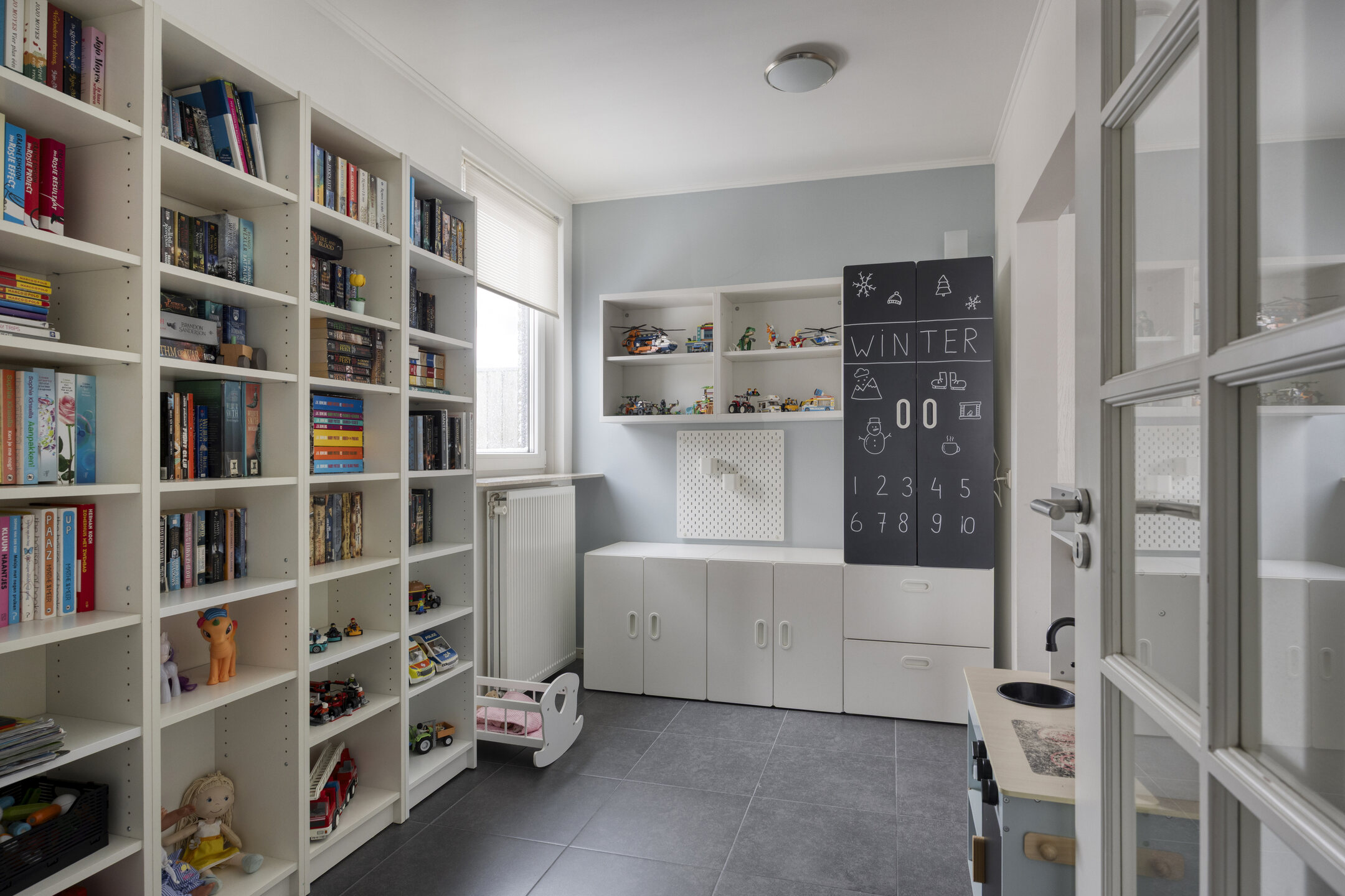 Via de voordeur kom je in de entree met trapopgang en toegang tot de speelkamer. De ruime woonkamer met eethoek bevindt zich aan de voorzijde.