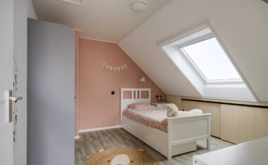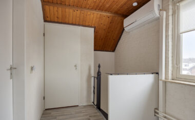 De tweede verdieping is bereikbaar via een vaste trap. Hier bevinden zich nog twee slaapkamers met bergruimte onder de schuine dakvlakken. Tevens bevindt zich hier een ruime vliering, wat deze verdieping bijzonder praktisch maakt.