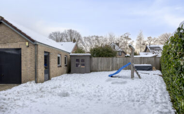 De achtertuin biedt ruimte voor een terras en groen en vormt een fijne plek om buiten te zitten. Daarnaast is er een ruime garage aanwezig.