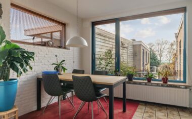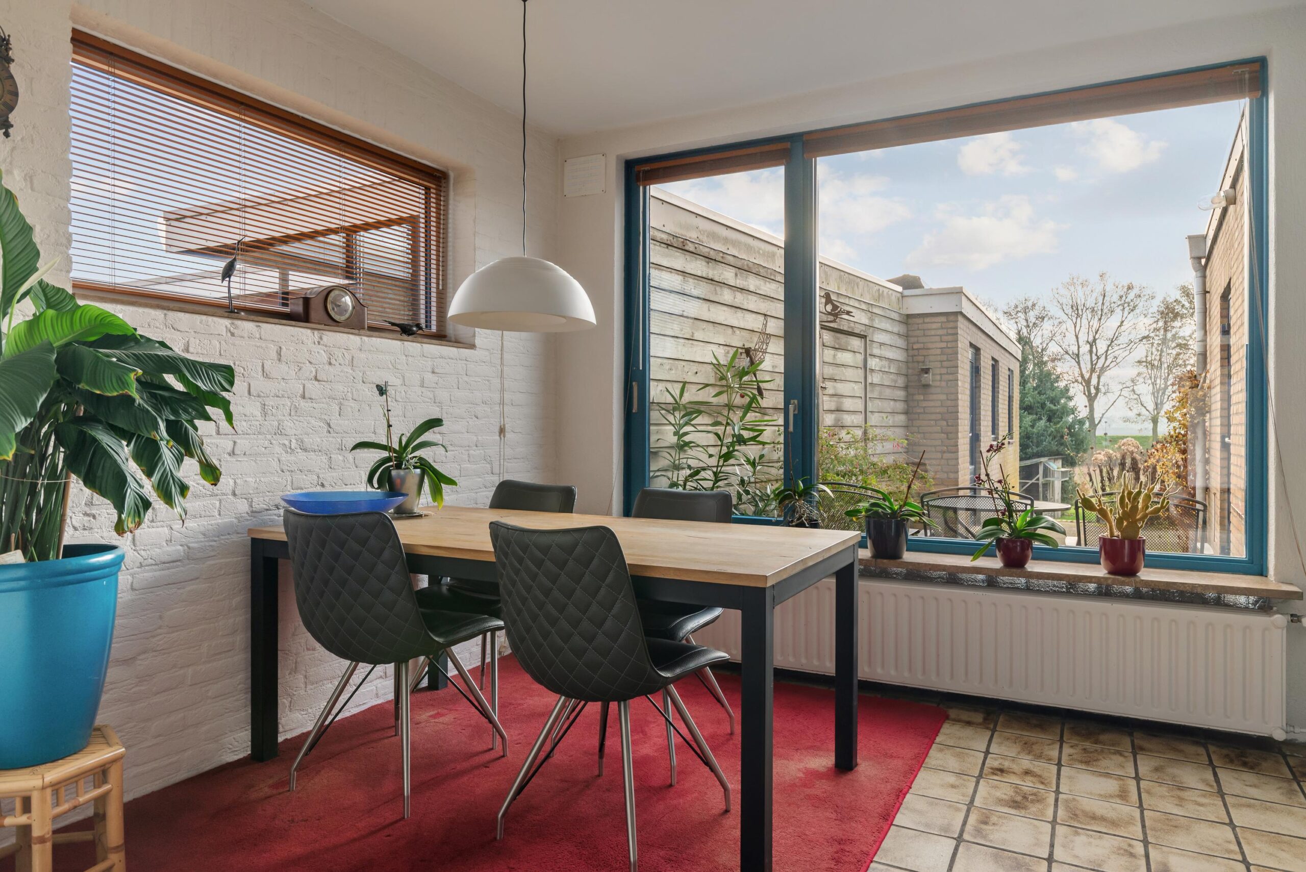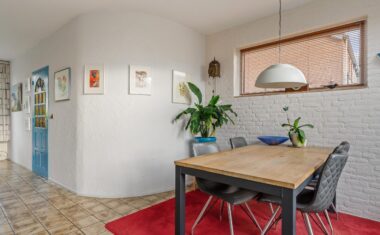 Via de voordeur betreedt u de lichte hal met meterkast, toegang tot de woonkamer en de eerste verdieping. De gezellige en ruime living beschikt over grote raampartijen, waardoor er een prettig lichtinval is. Aansluitend vindt u de eetkamer met uitzicht op de zonnige achtertuin.