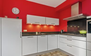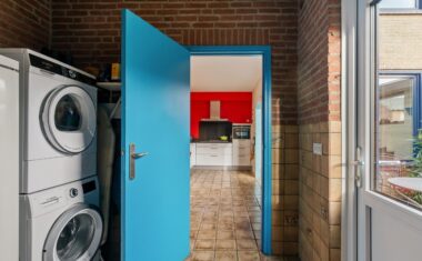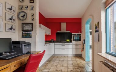 De halfopen keuken is voorzien van inbouwapparatuur: 6-pits gaskookplaat, combi-oven/magnetron, vaatwasser, en koelkast. Een deel van de keuken is slim ingericht als thuiswerkplek, ideaal voor werk- of studeerplekken in huis. Vanuit de keuken is er directe toegang tot de bijkeuken, waar onder andere de wasmachineaansluiting is gesitueerd. Tevens biedt de bijkeuken toegang tot de kelder en een apart toilet.
