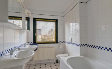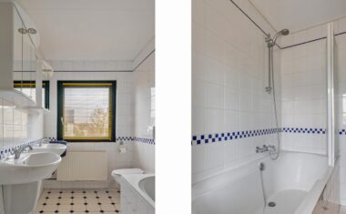 - Badkamer voorzieningen Ligbad, toilet, dubbele wastafel