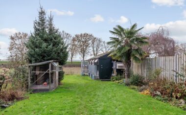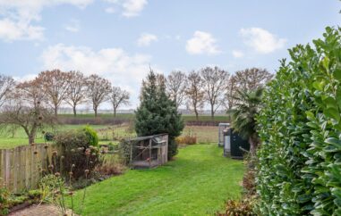 De achtertuin is een absoluut pluspunt: zeer diep, groen en met volop privacy. Hier kunt u heerlijk genieten, tuinieren of spelen met het gezin. Vanuit de tuin kijkt u fraai weg over de aangrenzende weilanden richting de Maas.