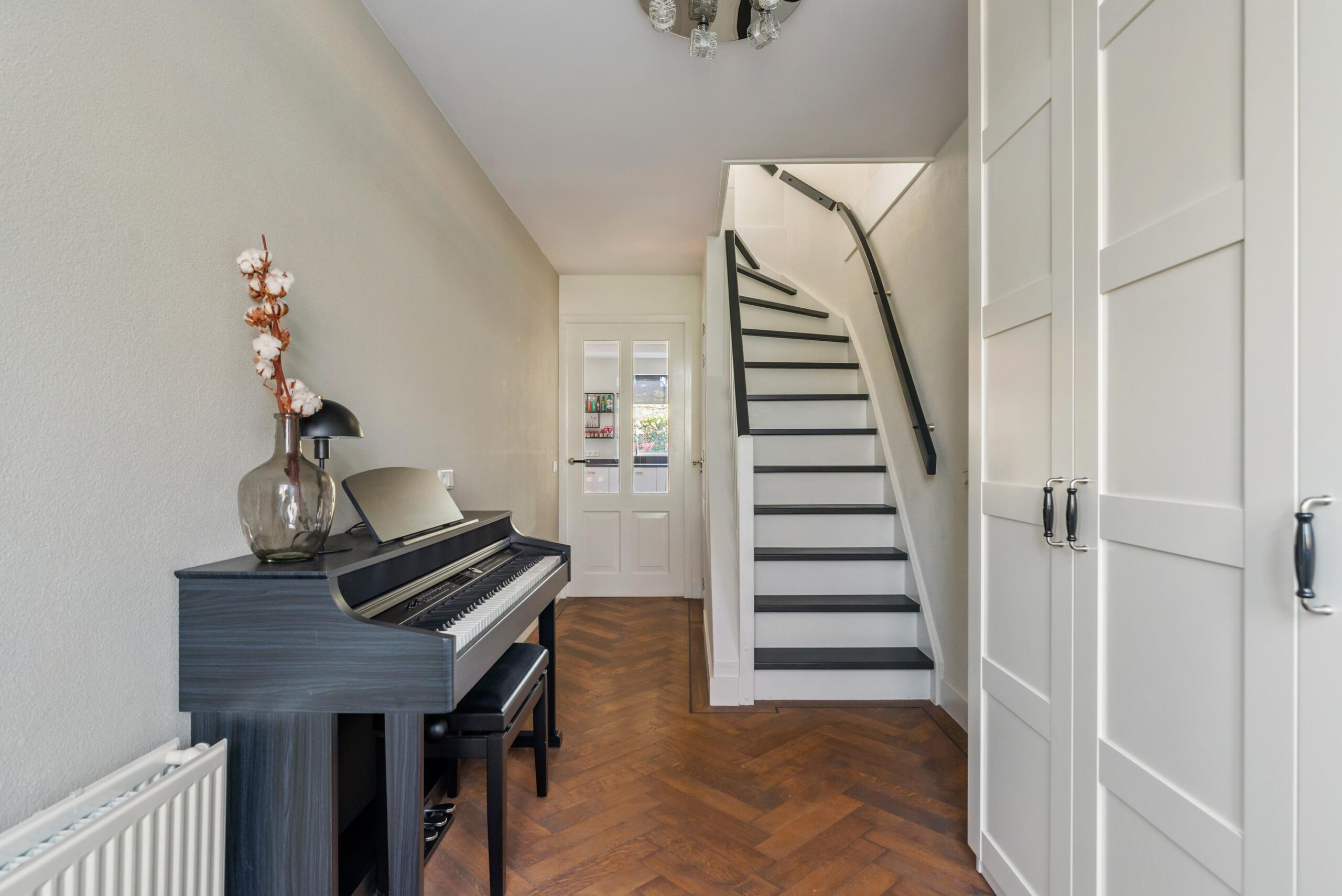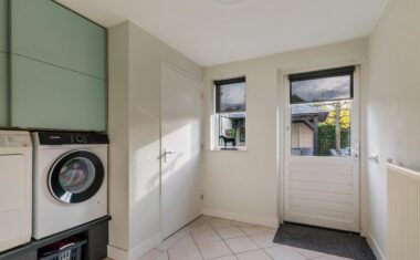 Via de entree kom je binnen in een lichte hal met meterkast. Vanuit hier loop je direct door naar de royale woonkeuken: een heerlijke plek voor iedereen die van koken én gezellig samenzijn houdt. De keuken (2018) is uitgerust met moderne apparaten, waaronder een combimagnetron, stoomoven, vaatwasser, inductiekookplaat in hob to hood connection met afzuigkap, koelkast en Quooker. Extra voorraad berg je moeiteloos op in de praktische provisiekast.