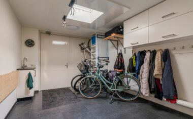 Tot slot biedt de ruime garage/werkruimte nog volop mogelijkheden. Met een vaste kastenwand incl. grote inbouwvrieskast en een flexibele indeling is deze ruimte ideaal als kantoor, praktijk, hobbyruimte of extra bergruimte.