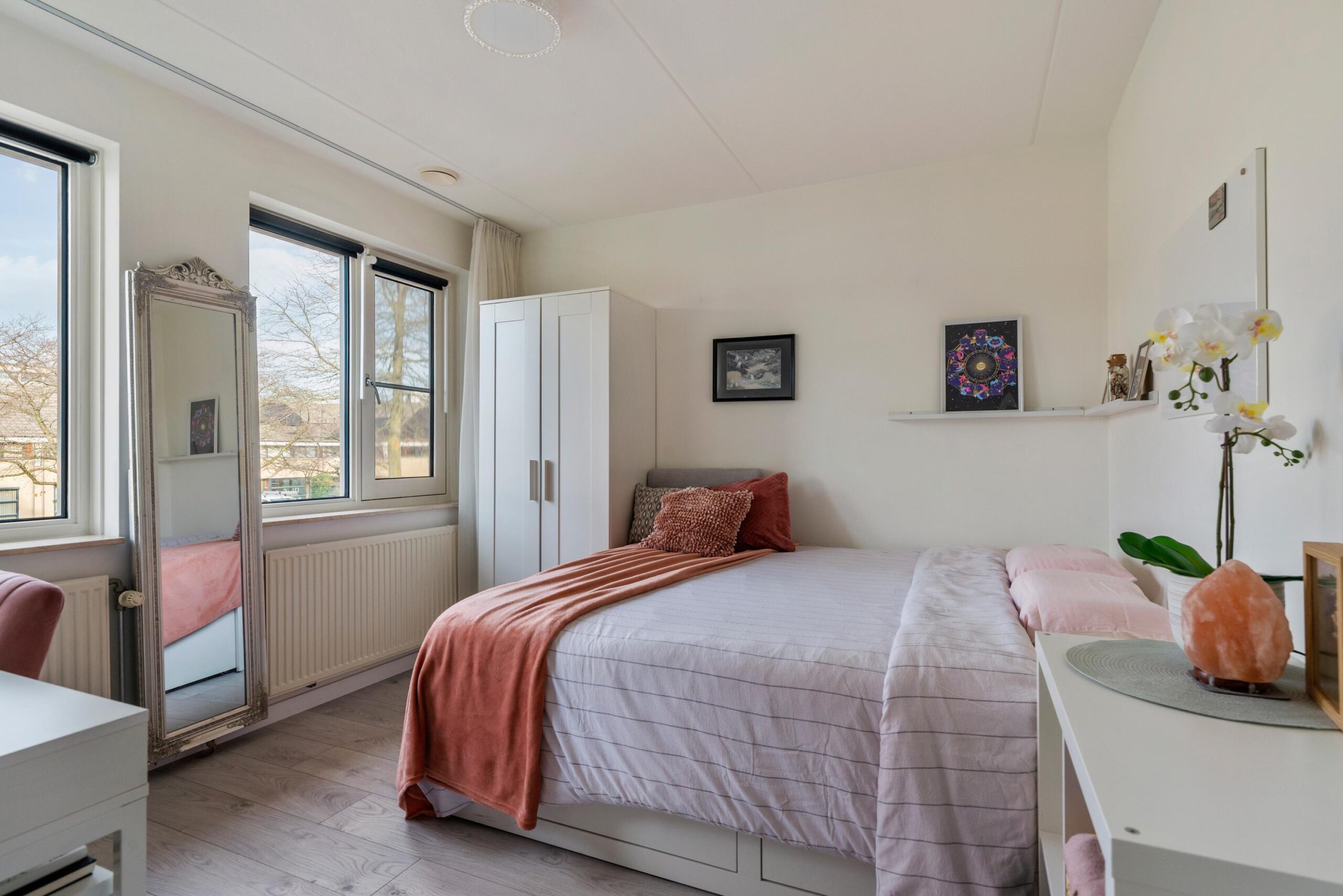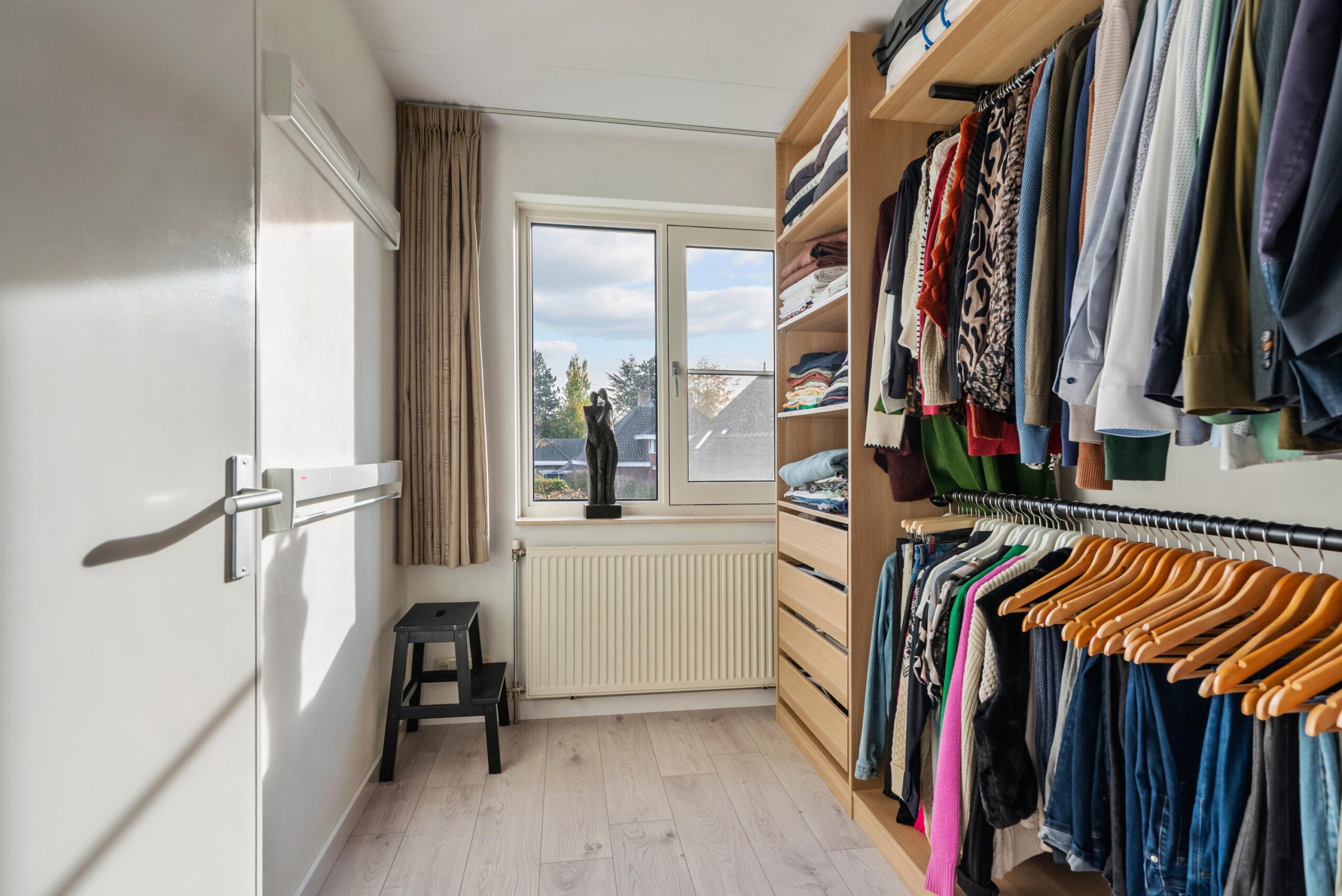 Via de overloop bereik je een complete en verzorgde badkamer (2024), uitgerust met elektrische vloerverwarming, een douche met sunshower, wastafelmeubel en toilet. Daarnaast bevinden zich op deze verdieping drie ruime slaapkamers, ieder met veel lichtinval en praktische indeling en is er een royale garderobekamer én een handige CV-ruimte, zodat je altijd voldoende bergruimte hebt.