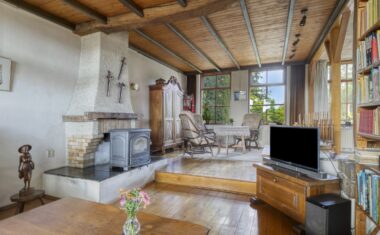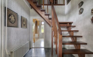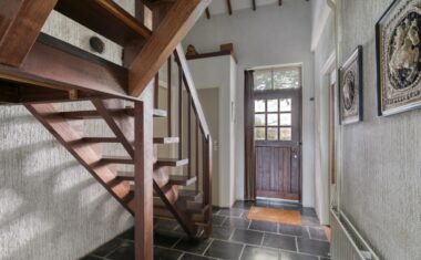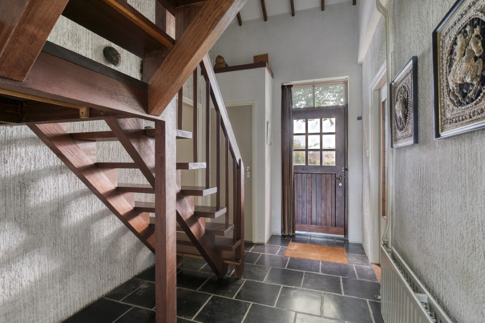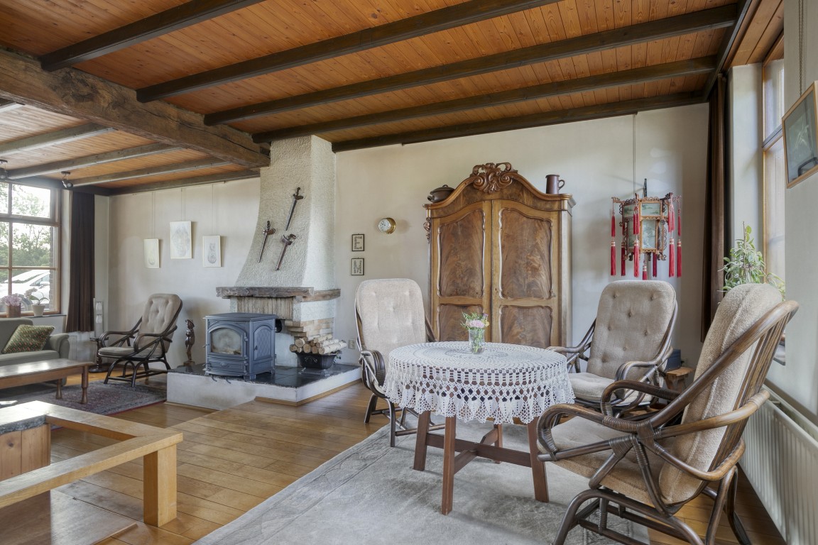 Bij binnenkomst in de ruime entree ervaart u direct de warme en uitnodigende sfeer van het huis. Vanuit de hal bereikt u de royale woonkamer, die dankzij de grote ramen geniet van veel natuurlijk licht en uitzicht op de rustige straatzijde. De aanwezige haard vormt hier het hart van de ruimte en maakt het tot een gezellige plek om te ontspannen.