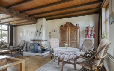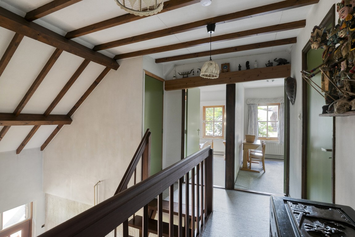 Bij binnenkomst treft u een royale hal met meterkast en toegang tot de voorkamer, keuken en woonkamer. De woonkamer ademt sfeer dankzij de karakteristieke raampartijen en details zoals houten deuren en balken.