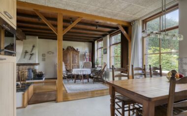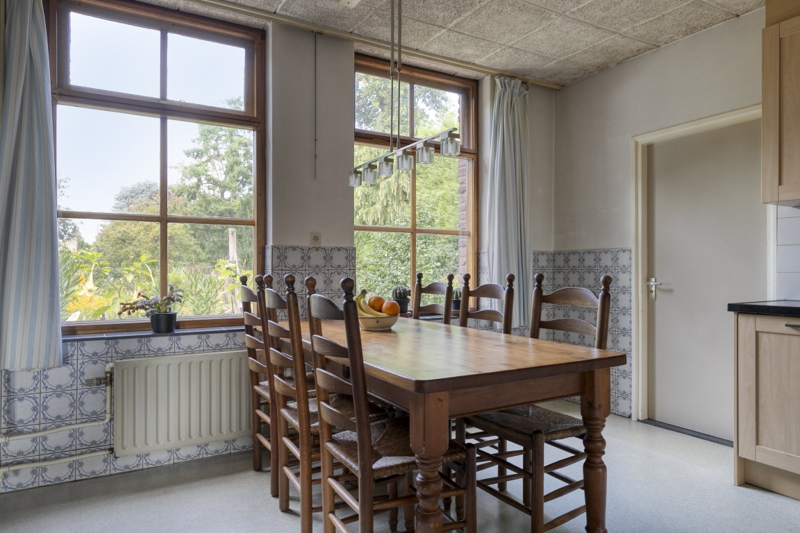 De woonkeuken vormt het hart van het huis. Hier is ruimte om samen te koken, eten en genieten. Vanuit de woonkamer en keuken heeft u prachtig uitzicht tot de tuin. Daarnaast beschikt de woning over een praktische provisiekelder, een bijkeuken met toegang tot het toilet, de badkamer, voorzien van ligbad, douche en wastafel. Ook bevindt zich er een garage.