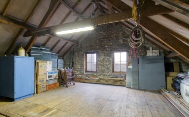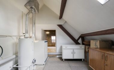 Deze ruimte strekt zich uit over de gehele garage en biedt een zee aan mogelijkheden. Met gemak kan hier nog één of meerdere slaapkamers, een werkkamer of hobbyruimte gerealiseerd worden. De hoge nok en de karakteristieke houten balken maken dit een indrukwekkende ruimte vol potentie.