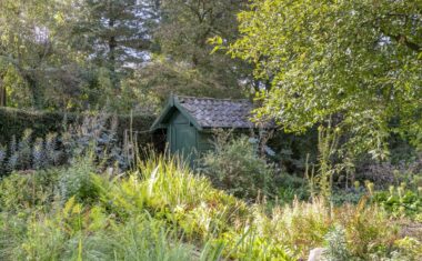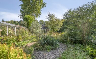 – grote, fraai aangelegde achtertuin met veel groen, bloemen en volledige privacy.