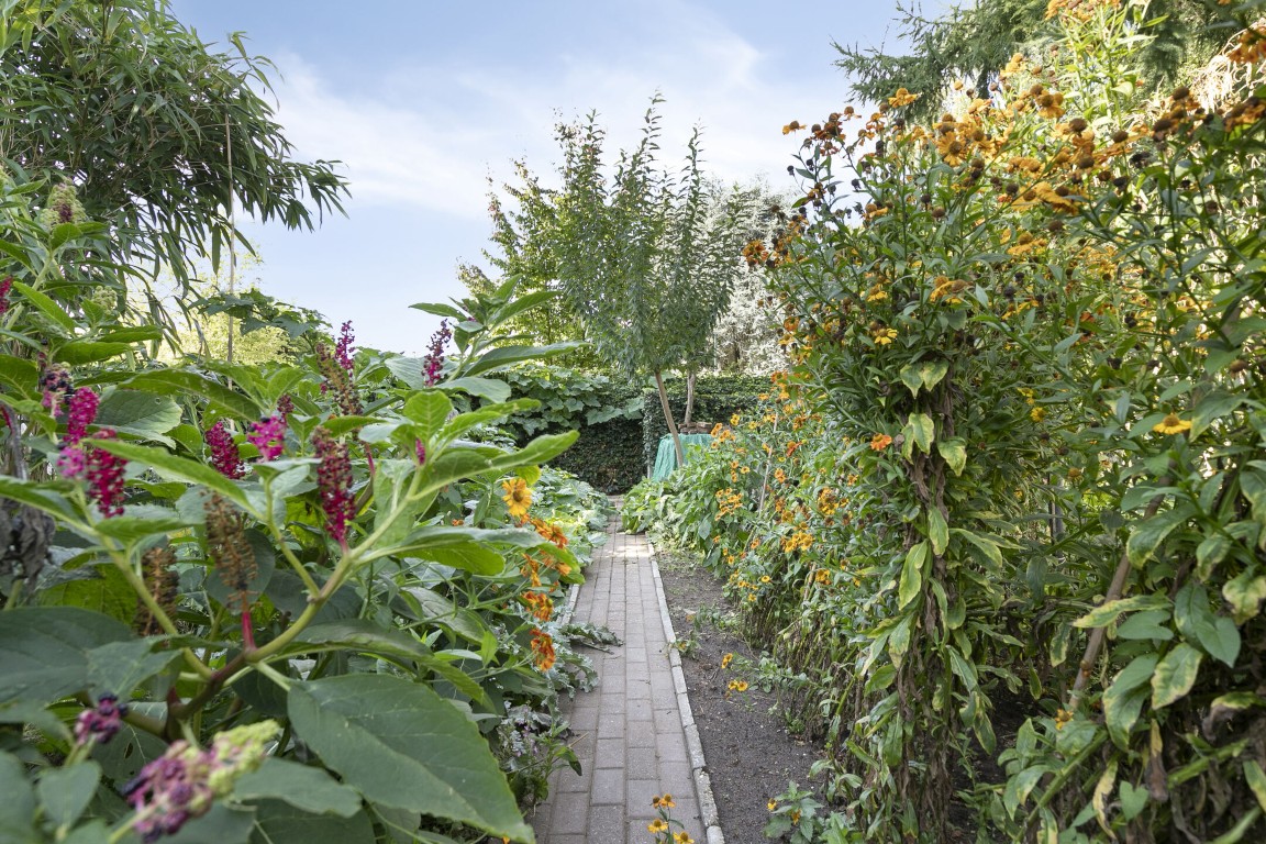 De achtertuin is een waar paradijs voor liefhebbers van groen en buitenleven. Het doordachte beplantingsplan zorgt voor een prachtige afwisseling van bloeiende bloemen, siergrassen en bomen, waardoor er altijd kleur en sfeer aanwezig is. Dankzij de vrije ligging geniet je hier van optimale rust en privacy – een heerlijke plek om te ontspannen, te spelen of lange zomeravonden door te brengen. Verder is er een achterom die uitkomt op de Veerstraat.