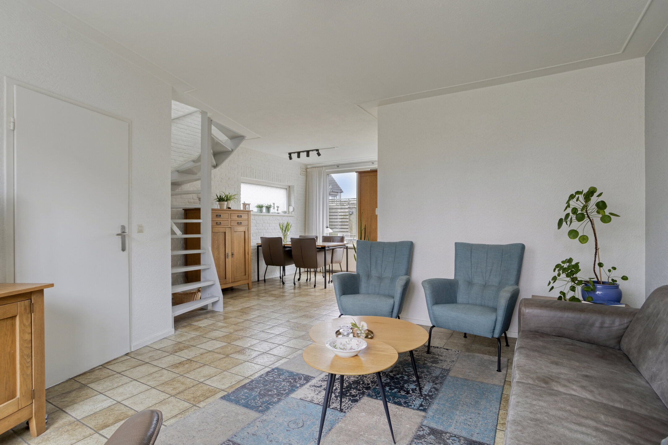– begane grond tegelvloer, verdieping met laminaat.