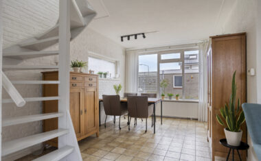 – de muur tussen de woonkamer en keuken is niet dragend en kan eenvoudig verwijderd worden.