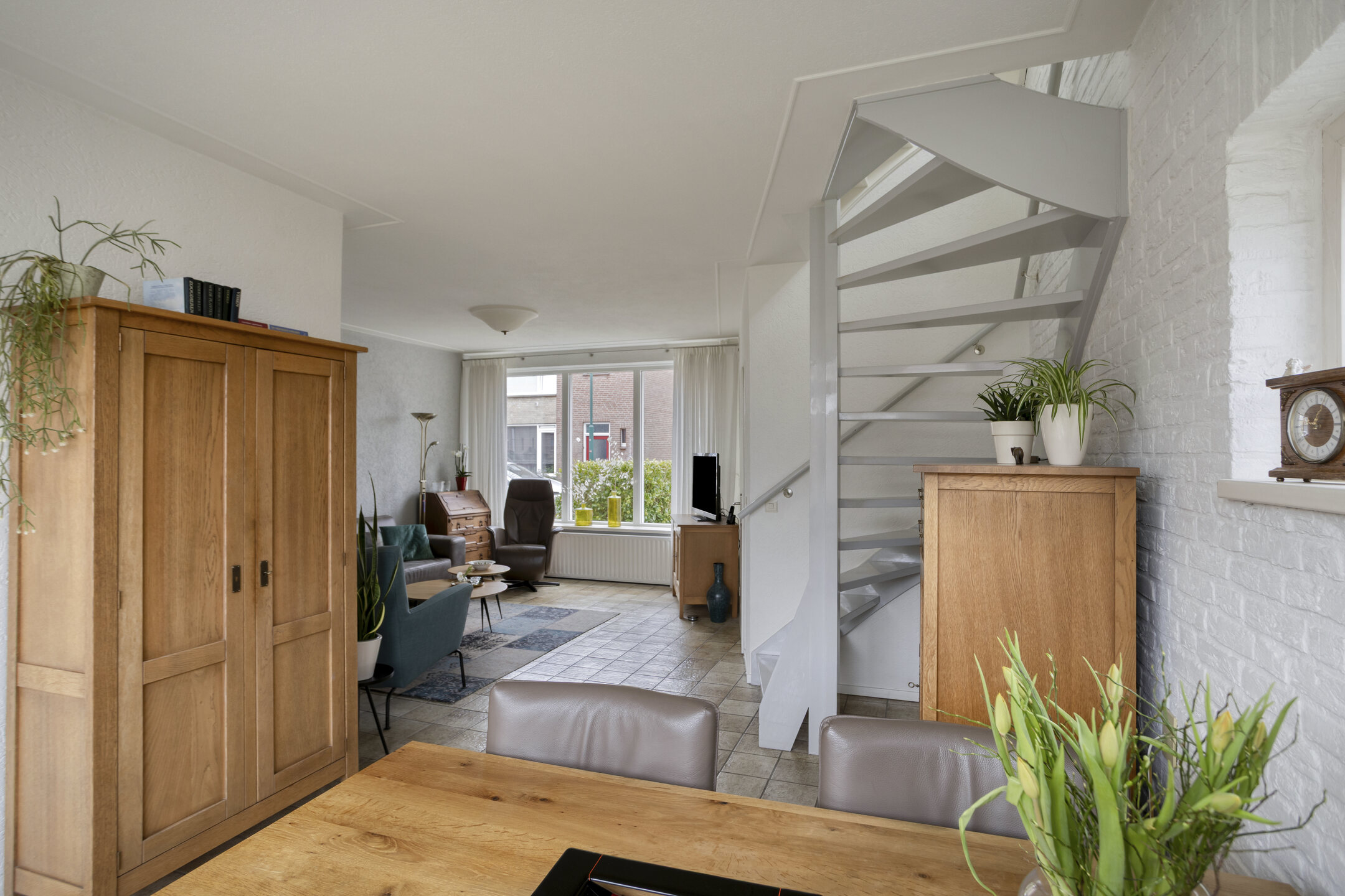 Via de entree betreedt u de woning met toegang tot het toilet (2013), een praktische bergkast en de meterkast. Vanuit de hal komt u in de ruime en lichte woonkamer, waar voldoende plaats is voor zowel een comfortabele zithoek als een royale eettafel. In de woonkamer bevindt zich tevens de trapopgang naar de eerste verdieping.