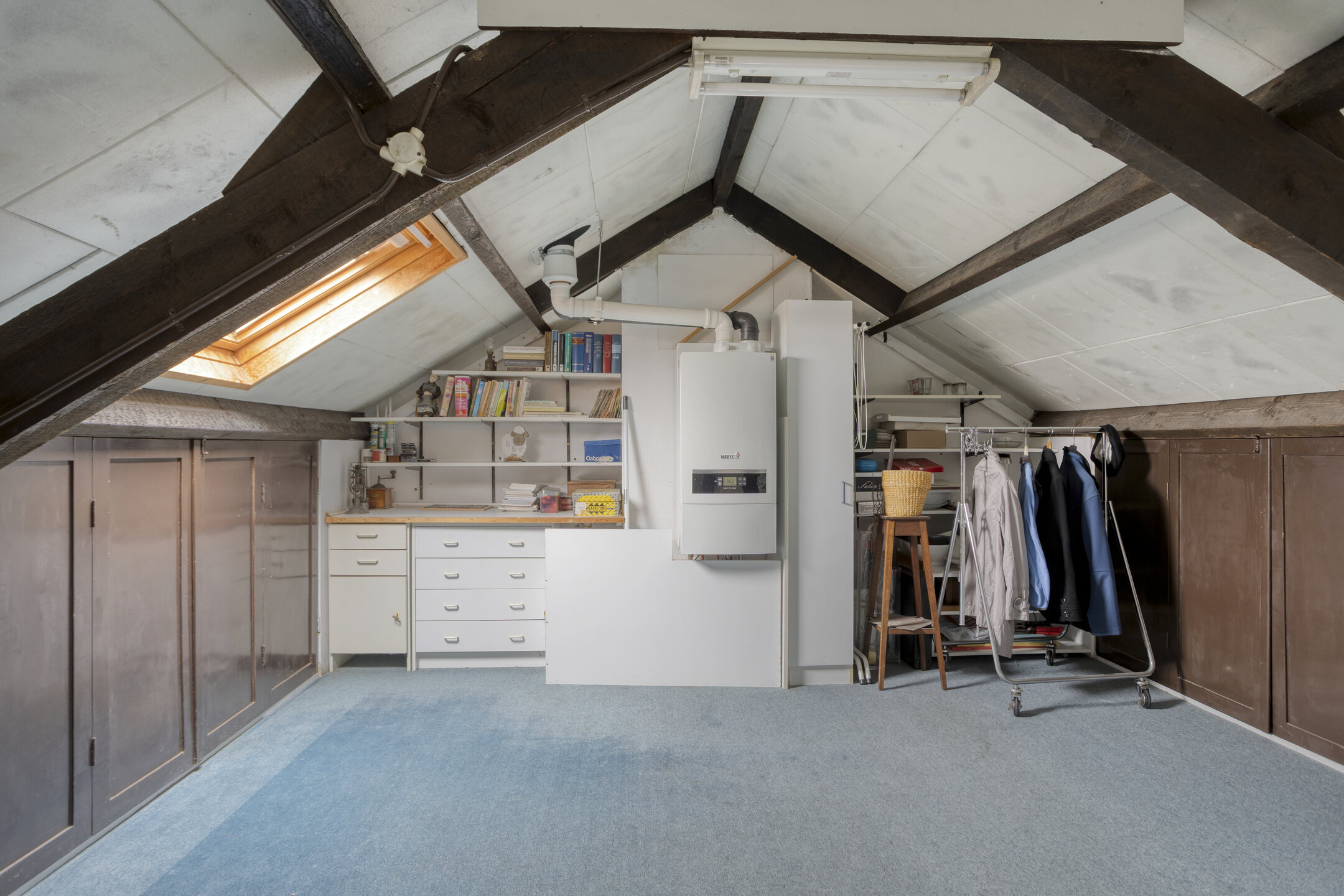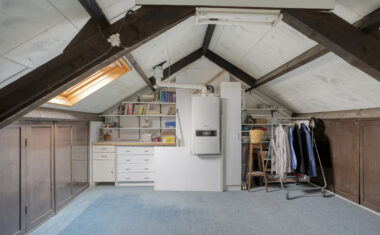 Via een dichte vaste trap bereikt u de zolderverdieping. Hier bevindt zich een ruime zolderkamer met de opstelling van de cv-installatie en extra bergruimte. Deze verdieping biedt diverse mogelijkheden en kan bijvoorbeeld worden gebruikt als extra slaapkamer, werkruimte of hobbykamer. Ook kan hier eenvoudig een aansluiting voor de wasmachine worden gerealiseerd.