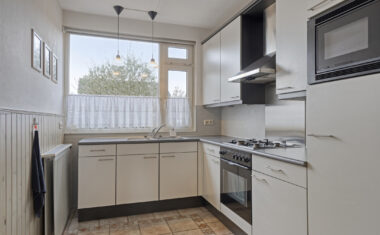 De keuken (1997) is praktisch ingericht en beschikt over diverse inbouwapparatuur zoals een gaskookplaat, afzuigkap, oven en koelkast.