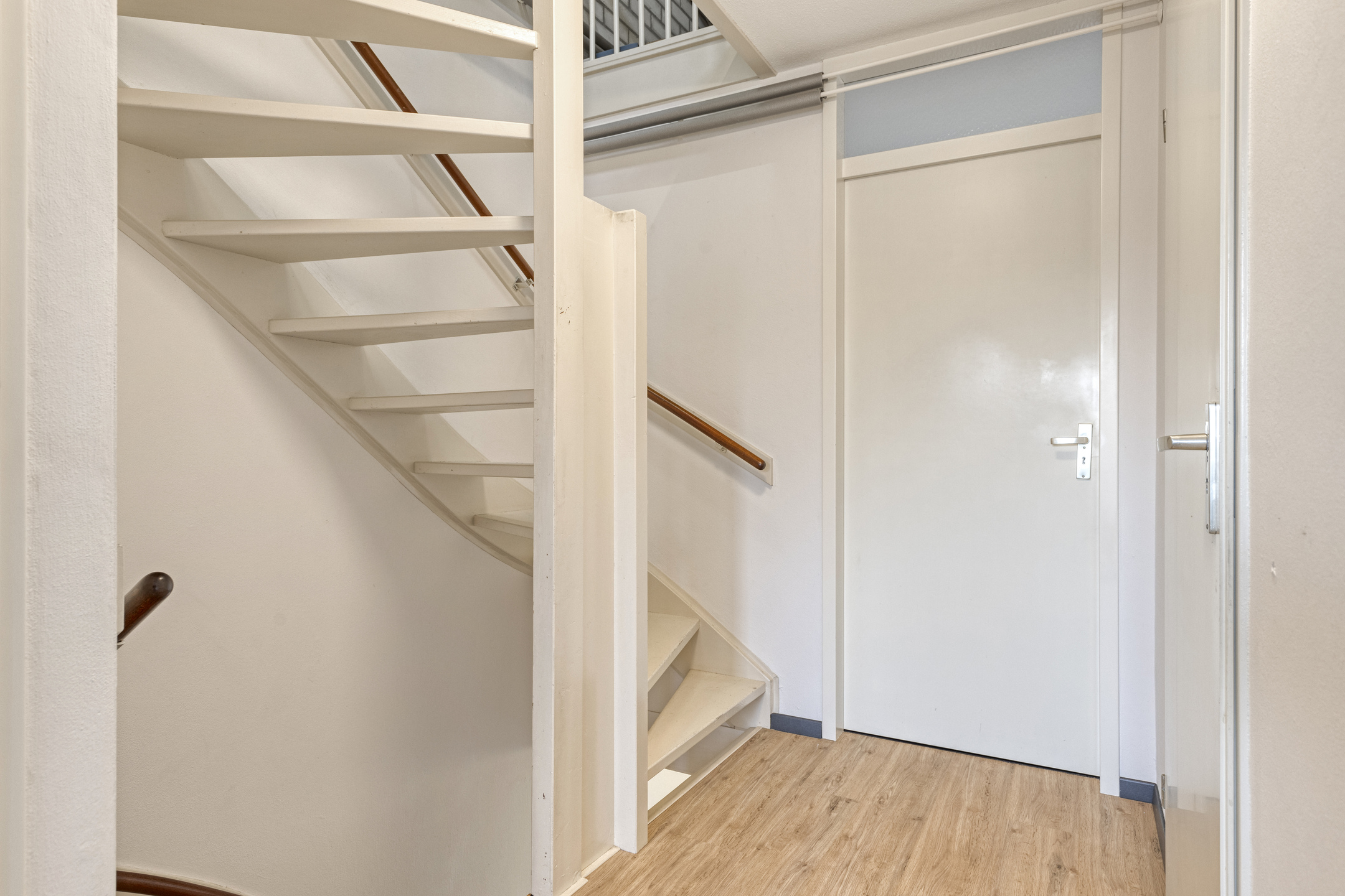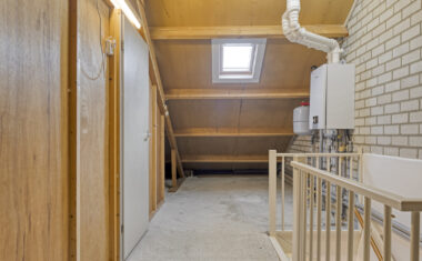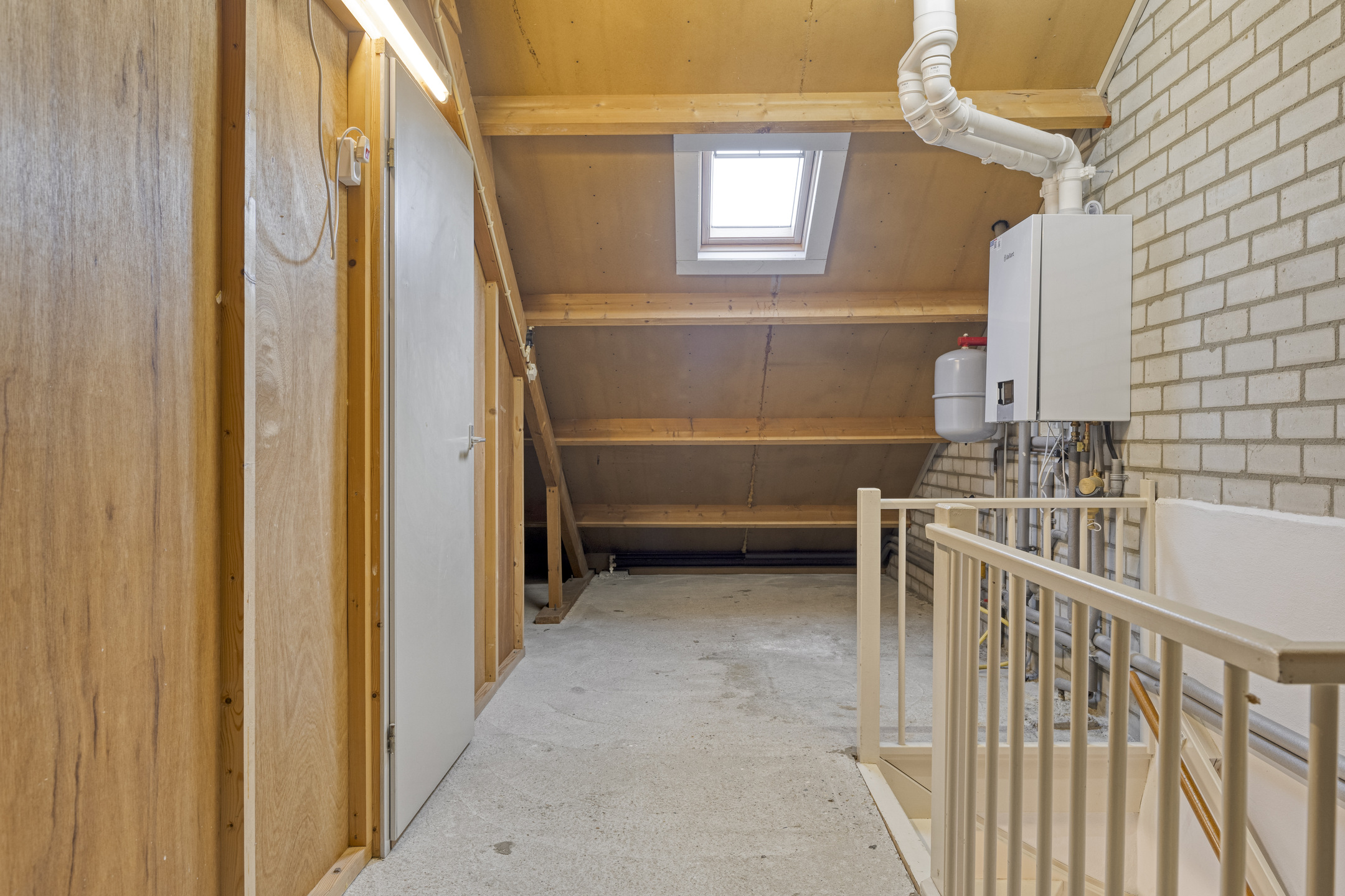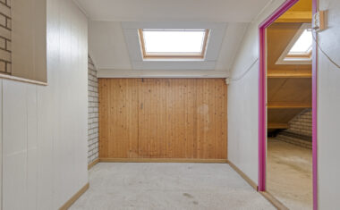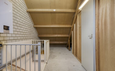 Via een vaste trap bereik je de tweede verdieping. Hier bevindt zich een vierde slaapkamer met bergruimte achter de knieschotten. De overloop biedt extra mogelijkheden voor opslag of het plaatsen van witgoedapparatuur.